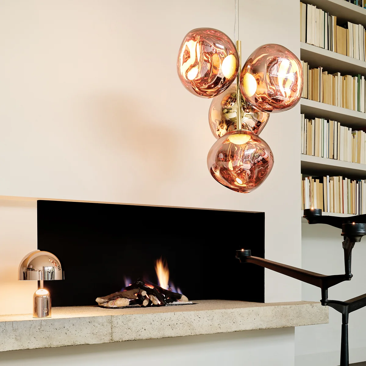De Melt Chandelier Mini LED-kroonluchter brengt de betoverende esthetiek van de iconische Melt-lampen naar een compacter formaat - perfect voor moderne woonruimtes en stedelijke omgevingen. Met vier handgeblazen Melt Mini-kappen in een elegante, licht getinte opalen afwerking creëert de kroonluchter een glinsterend lichtspel dat doet denken aan natuurlijke parels. De armatuur is vervaardigd in Duitsland en uitgerust met energiezuinige LED-technologie, waardoor het hoogste niveau van vakmanschap wordt gecombineerd met moderne verlichtingskwaliteit. Het wordt geïnstalleerd met één enkele stroomaansluiting, wat installatie en plaatsing bijzonder eenvoudig maakt.