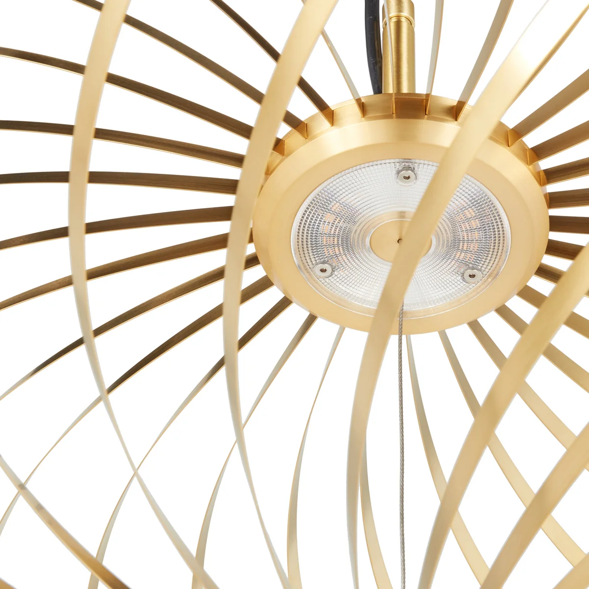 Volumineuze pendelarmatuur uit roestvrijstalen strips