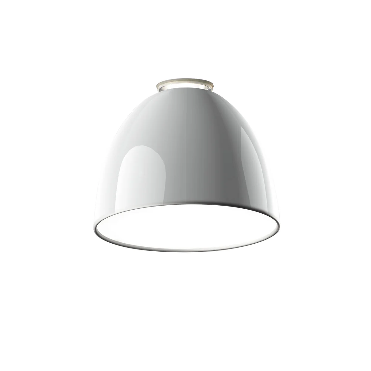 De Nur Mini Soffitto plafondlamp van de Italiaanse ontwerper Ernesto Gismondi wordt gekenmerkt door zijn klassieke en elegante vorm die gemakkelijk in verschillende omgevingen past. De aluminium behuizing straalt een koele sereniteit uit die zorgt voor een aangename woon- en werkomgeving. Dankzij de heldere onderkant van de klokvormige lampenkap wordt het licht optimaal gereflecteerd, waardoor een gezellige sfeer ontstaat.