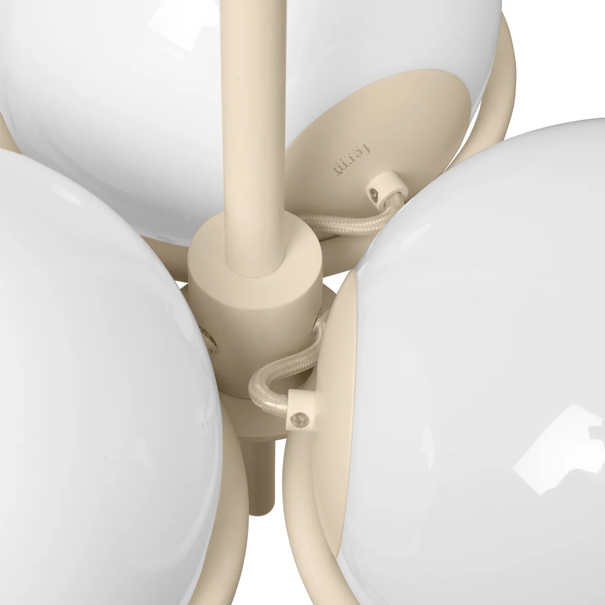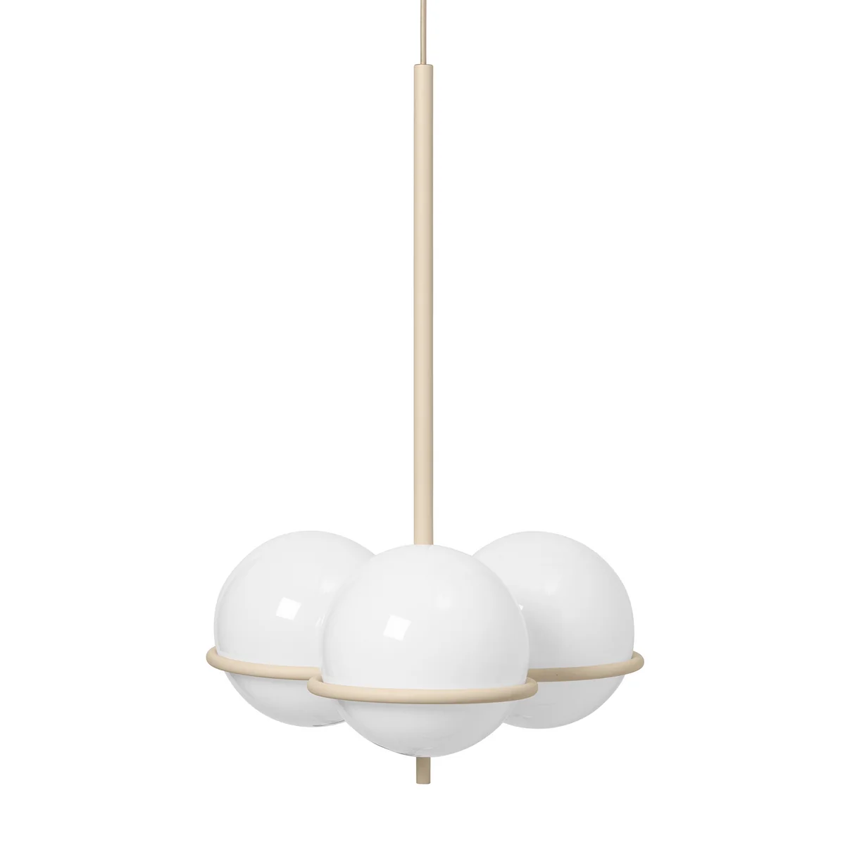 De kroonluchter Era kroonluchter van de Deense fabrikant Ferm Living maakt indruk met zijn elegante, geometrische vorm en zijn heldere lijnen. Hij is geïnspireerd op de Art Deco beweging van de jaren '20. De drie opalen glazen bollen van de Era kroonluchter zorgen voor een delicate, tijdloze uitstraling. Hoewel de kroonluchter vrij eenvoudig is vormgegeven, maakt de ongewone vorm hem tot een blikvanger. De Era kroonluchter kan optimaal worden gemonteerd in de hal, het trappenhuis of boven de eettafel.