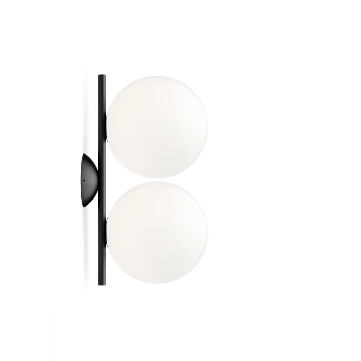 De IC DOUBLE wand- en plafondlamp van Flos combineert verfijnd design met de beste materialen. De lamp voor wand en plafond inspireert met zijn minimalistische, doordachte design. Twee licht glanzende lampbollen zijn in een slank metalen frame gehouden. Het maakt niet uit of hij aan de muur wordt gemonteerd of aan het plafond hangt: de IC DOUBLE verlicht de kamer met aangenaam, zacht licht.