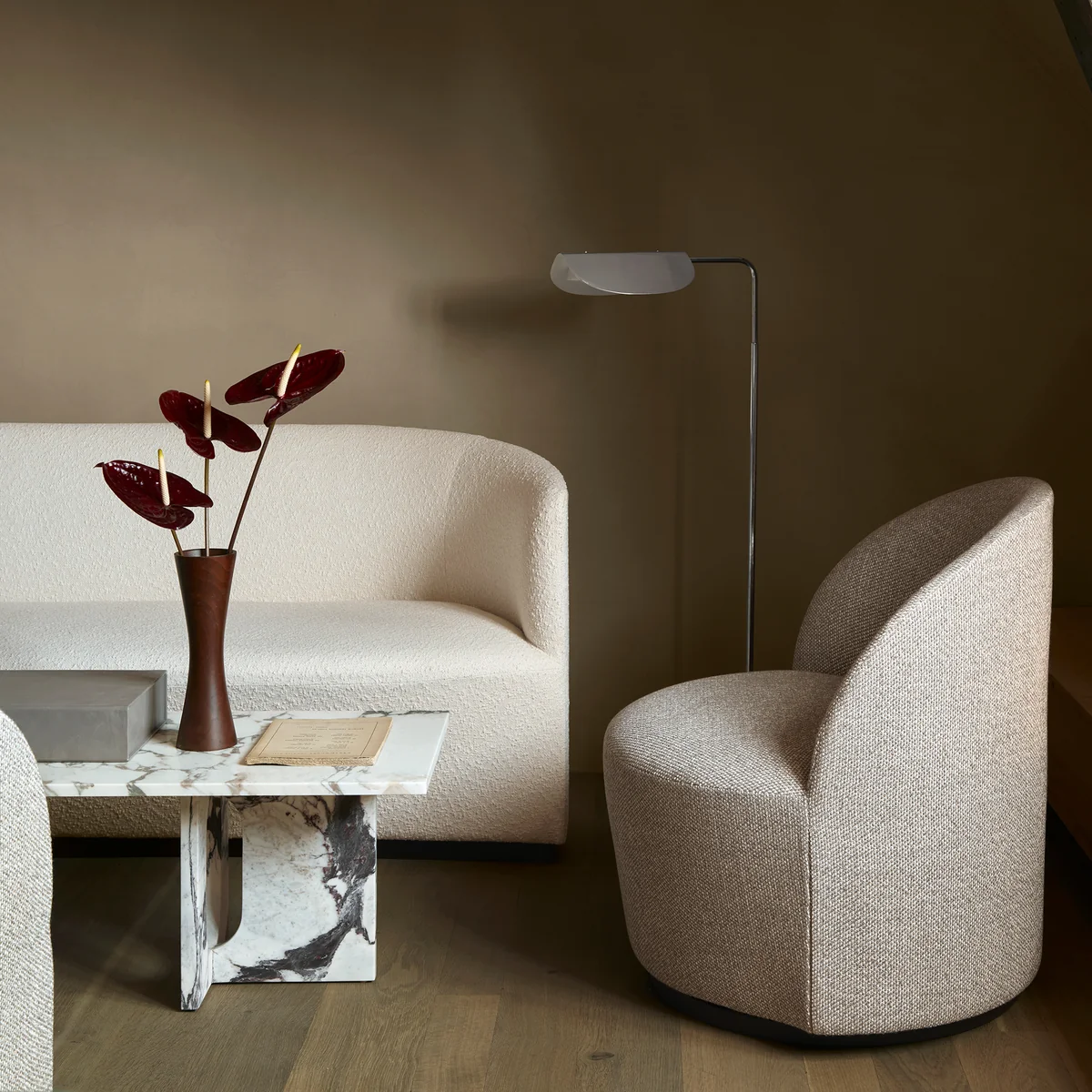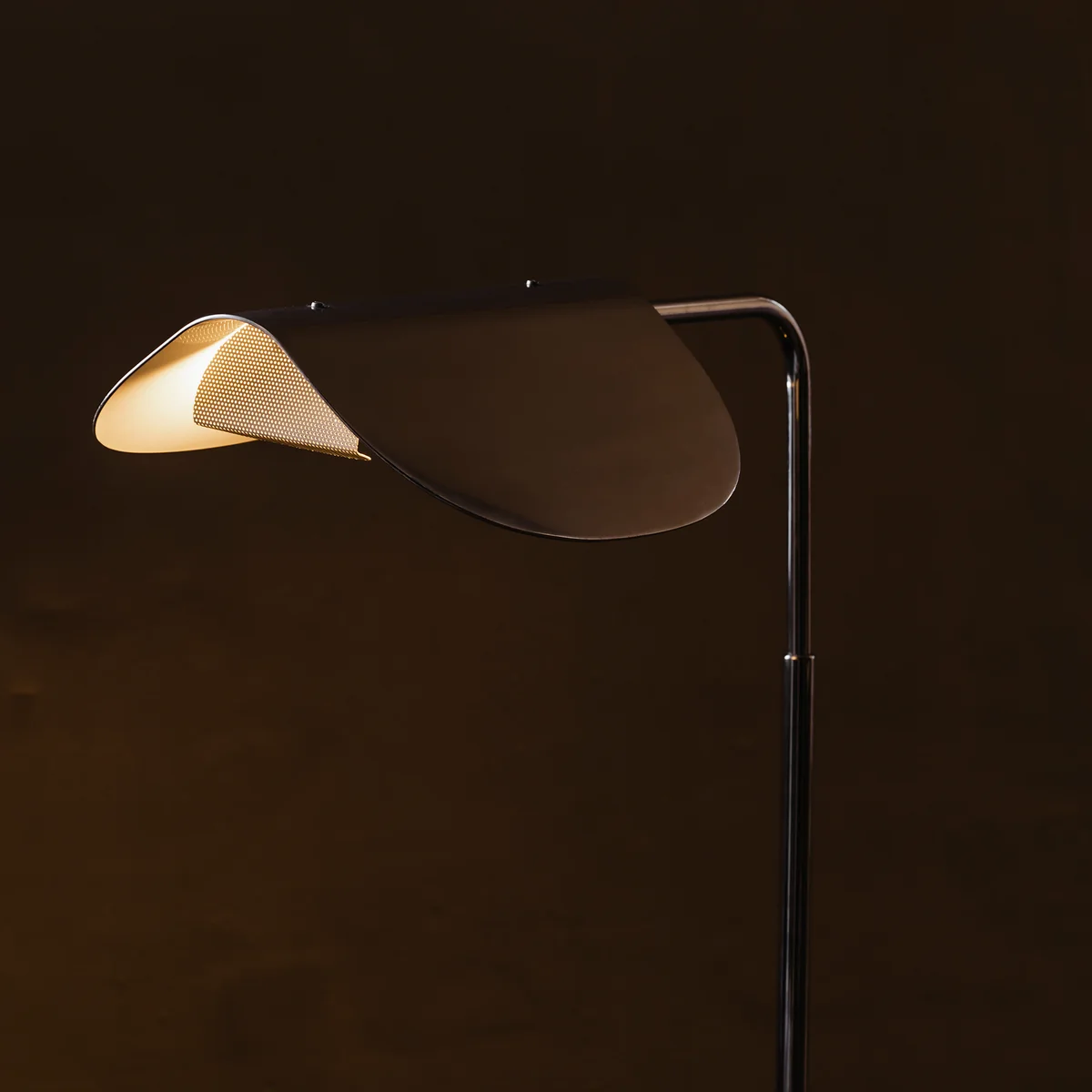 De kap van gepolijst aluminium zit op een slank frame en draait om het licht te richten waar het nodig is, waardoor speelse schaduwen en een fascinerende beweging ontstaan. Wing De lamp is verkrijgbaar als vloer- en tafellamp en past dankzij de minimalistische esthetiek naadloos in elke interieurstijl en verlicht ruimtes met haar natuurlijke aanwezigheid.