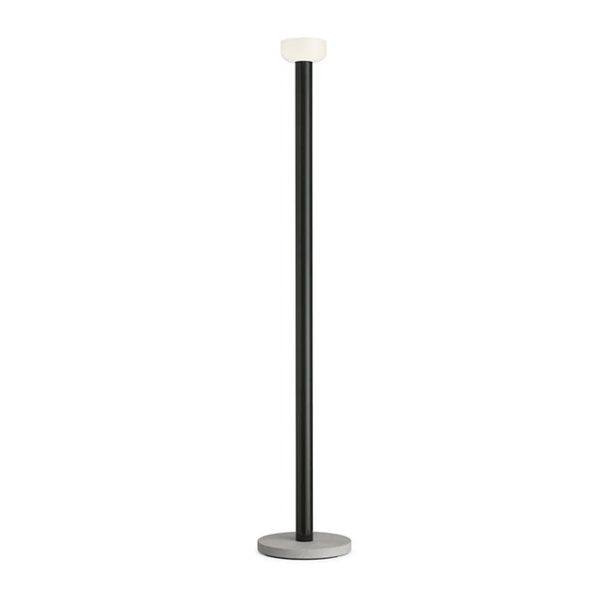 De vloerlamp Bellhop LED werd ontworpen door Edward Barber & Jay Osgerby voor Flos en overtuigt door zijn minimalistische design. De staande lamp bestaat uit een ronde betonnen voet en een staaf van gelakt aluminium. Aan de bovenzijde bevindt zich de eenvoudige kleine spot van geblazen glas, die de kamer verlicht met indirect licht. De slanke armatuur past in elke hoek en kan worden bediend via een 270 cm lange kabel met voetdimschakelaar.