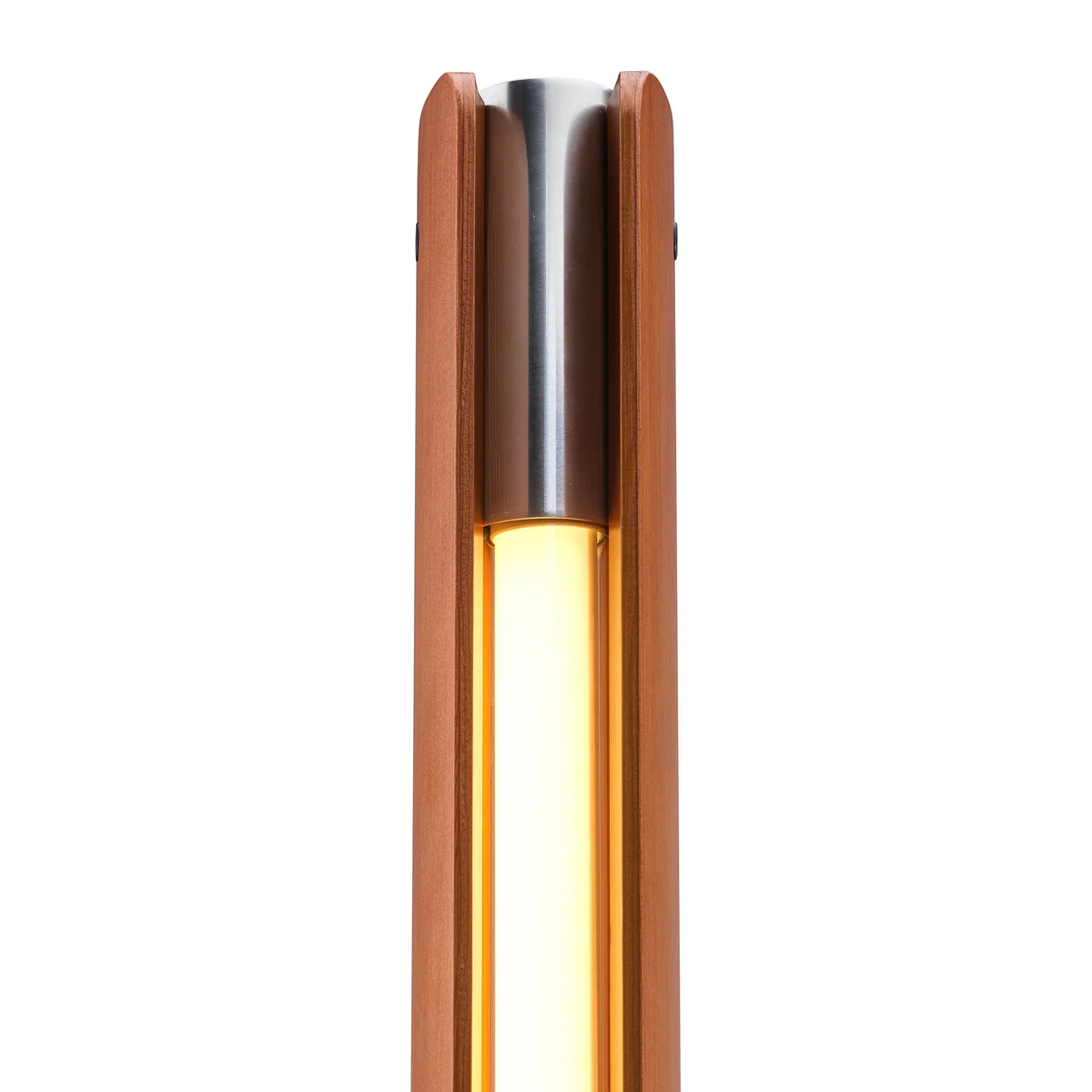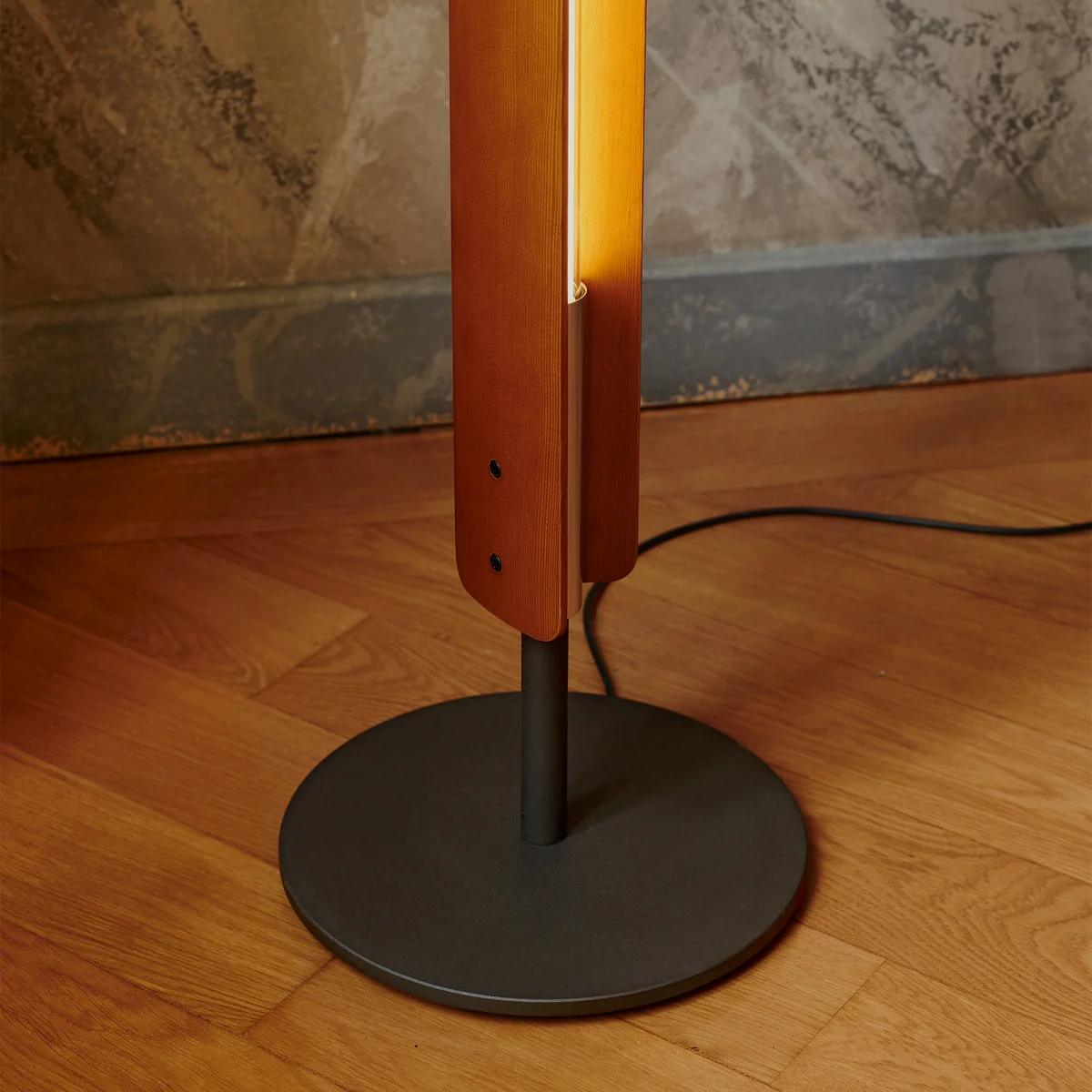 De robuuste voet van ruw, zwart ijzer, gescheiden van de houten vleugels door een filigraan staaf, geeft de vloerlamp stabiliteit en sculpturale expressiviteit. De speciaal ontwikkelde, dimbare LED-lichtbron geeft zacht, sfeervol licht en kan ook worden vervangen door standaard T8 LED-buizen. Geïnspireerd door traditionele scheepsbouwtechnieken weerspiegelt de Floor Scarpa Seki-Han Floor Scarpa weerspiegelt een diep begrip van materialen, proporties en vakmanschap - een poëtisch verlichtingsobject dat warmte, precisie en tijdloosheid combineert. Ook verkrijgbaar als hanglamp .