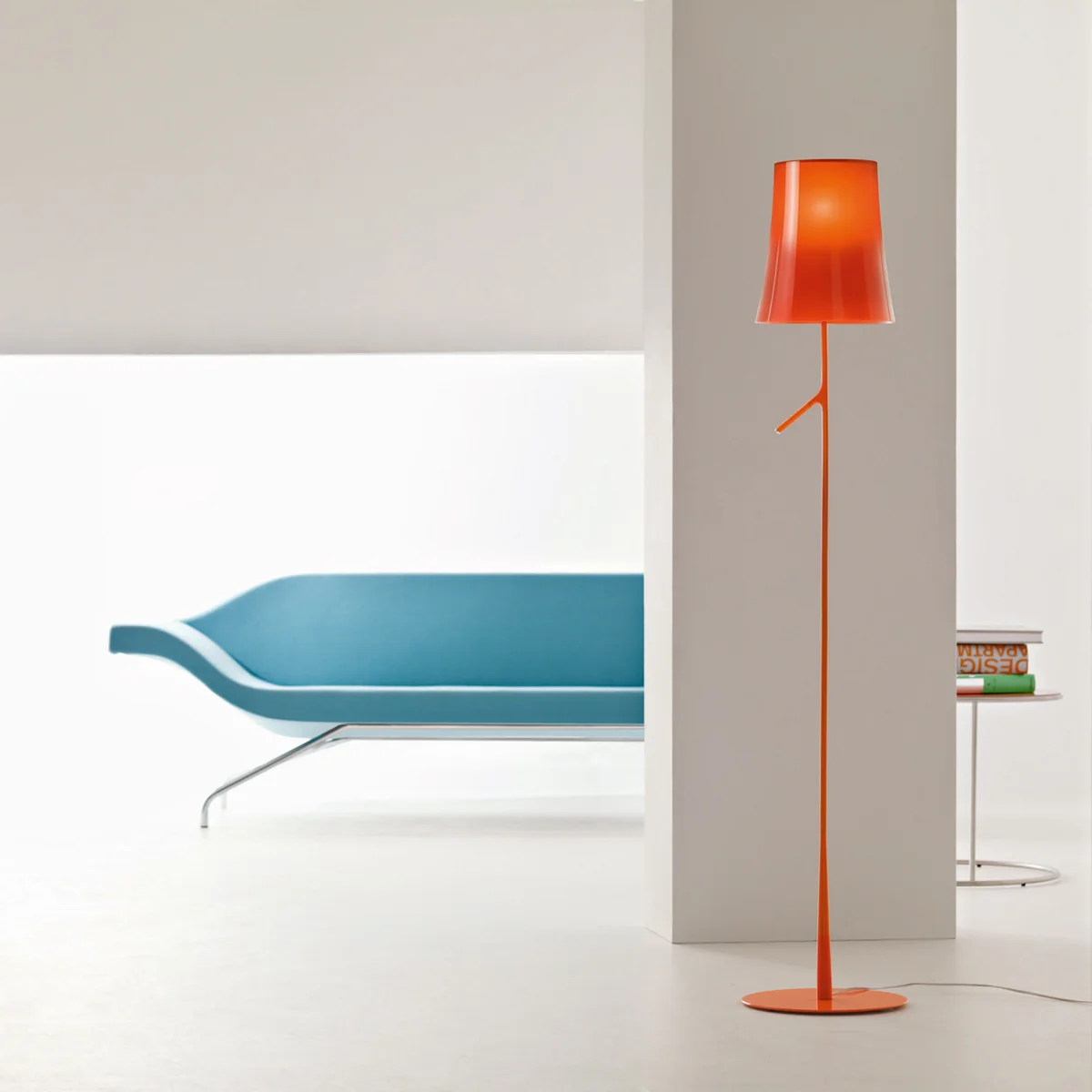 De klassieke leeslamp werd herontworpen met de Birdie staande lamp gemaakt door Ludovica en Roberto Palomba. De specialiteit van het ontwerp: De stam van de lamp wordt dikker en de vorm doet ons denken aan een tak van een boom, klaar om door een vogeltje meegenomen te worden.
