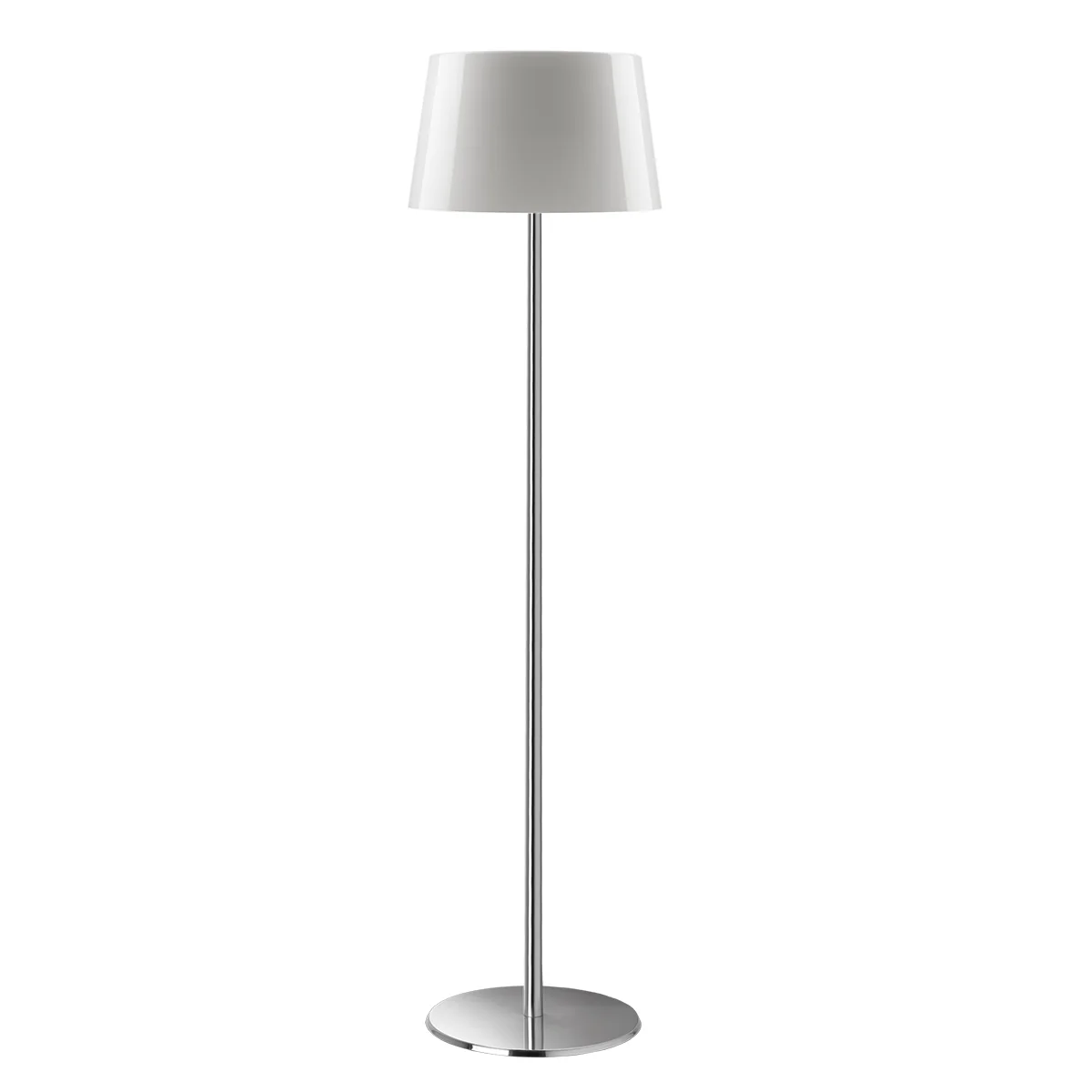 De ronde, platte standaard en de eenvoudige aluminium of verchroomde standaard onderstrepen het minimalistische design van de leeslamp en zorgen voor een evenwichtige expressie. Met deze puristische en tegelijkertijd elegante uitstraling vindt de vloerlamp zijn plaats in een veelheid van omgevingen, waaronder kantoorruimtes, hotellobby's of in de huiskamer.