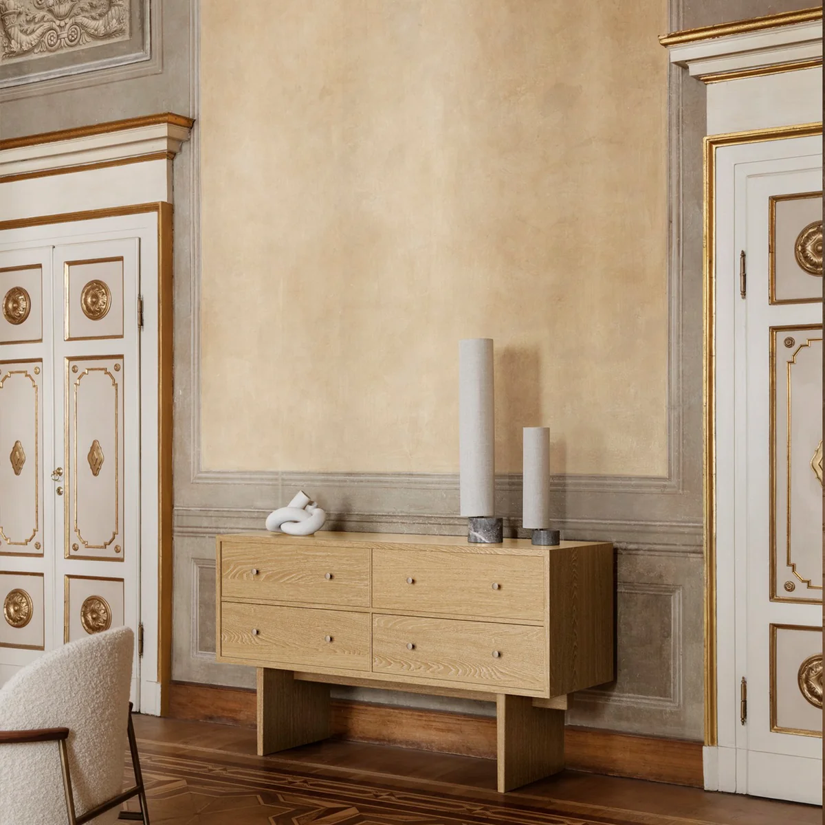 Space Copenhagen beschrijft de Unbound : De collectie van GUBI beweegt zich tussen het ambachtelijke en het sublieme. Het getuigt van een superieure verfijning met een duidelijke smaak. Met Unbound wilden we iets creëren dat deze complexiteit weerspiegelt.