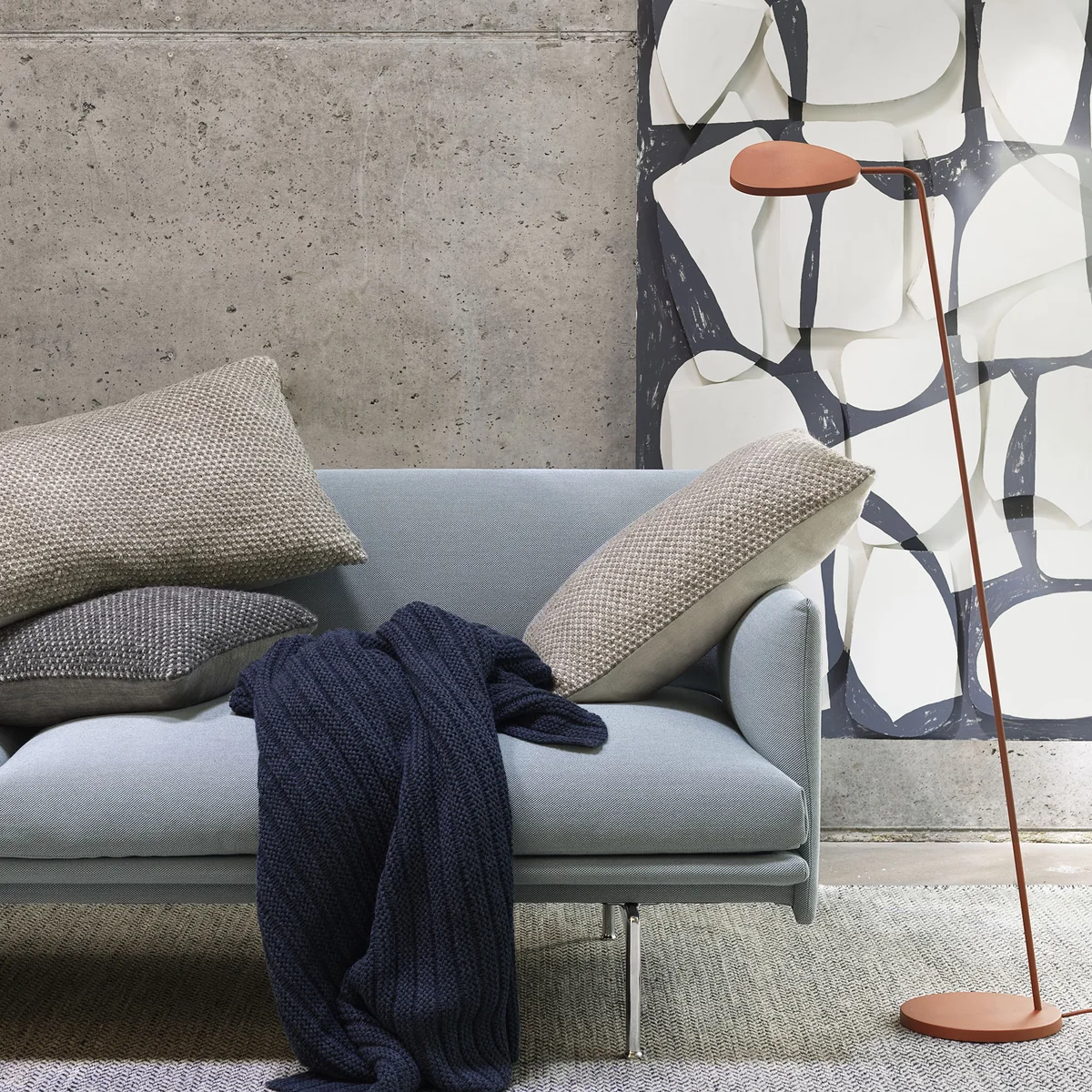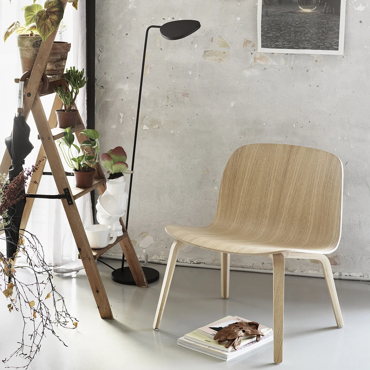 De Leaf vloerlamp heeft verschillende ontwerpstijlen afhankelijk van de hoek waarop hij wordt bewaakt. Het aluminium Muuto blad is ook verkrijgbaar als tafellamp, wat bijzonder mooi is in combinatie met de vloerlamp.