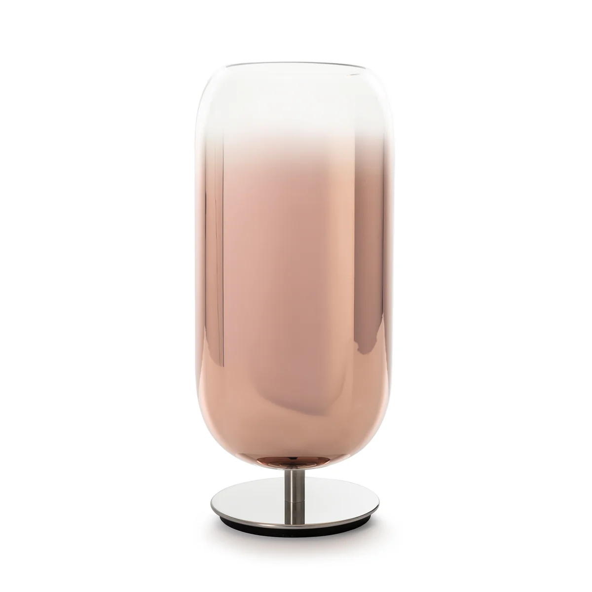 De Gople tafellamp van Artemide fascineert door zijn prachtige kleurverloop en zijn vloeiende vormen. Het designobject van glas zorgt voor diffuus, aangenaam licht in de slaapkamer of woonkamer en dient tegelijkertijd als decoratieve blikvanger op nachtkastjes of salontafels. Volgens een oude Venetiaanse traditie is deze lamp van wit glas en kristalglas met de hand geblazen, waardoor elk stuk uniek is. De tafellamp krijgt de laatste, glanzende toets door een innovatieve vacuümmetallisatie.
