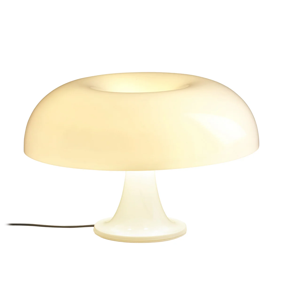 Nesso zorgt voor direct en diffuus licht. Het licht dringt gekleurd door de kop van de paddenstoel en schijnt direct op de basis. De voet en lampenkap van Nesso zijn gemaakt van ABS-hars, dat is spuitgegoten in verchroomde mallen.