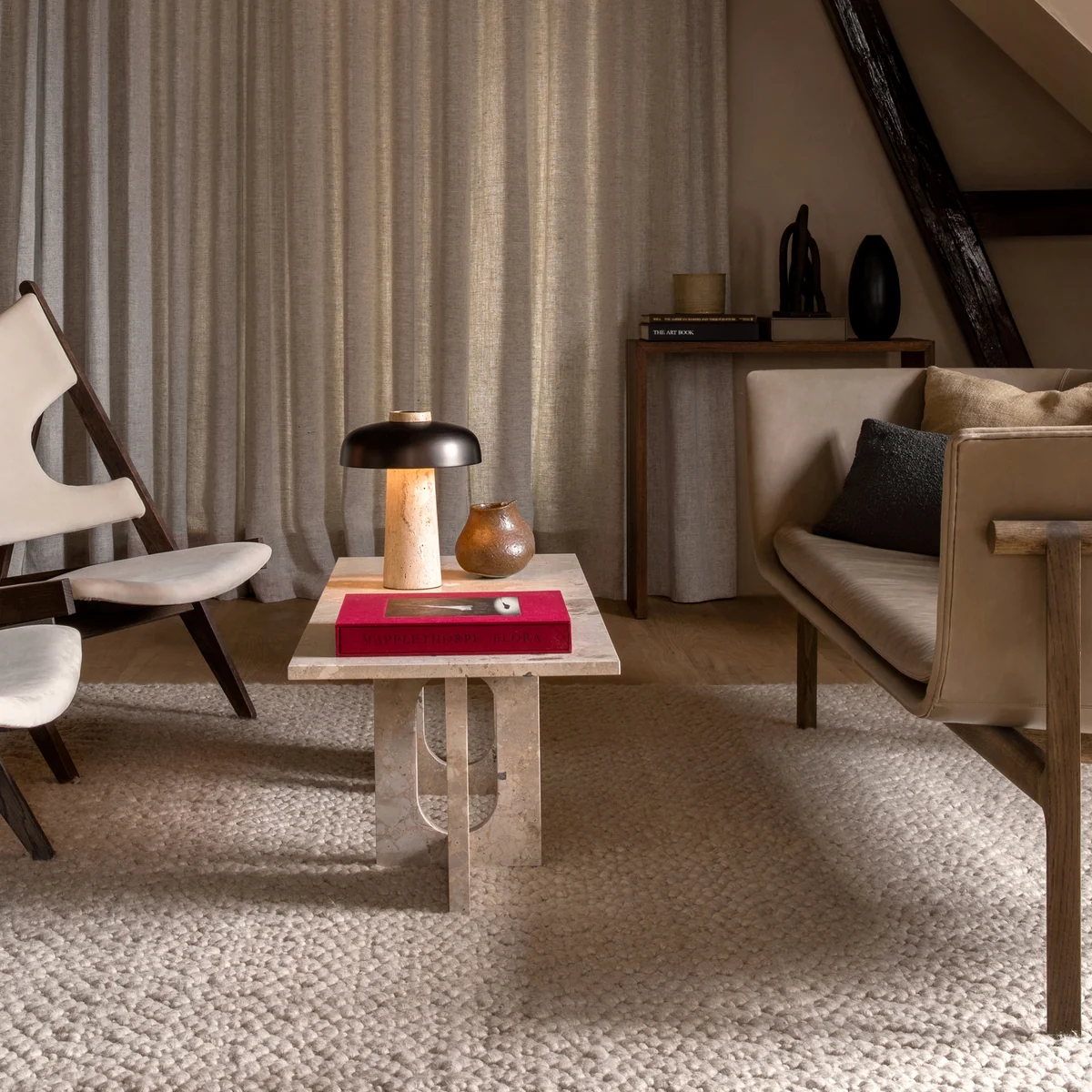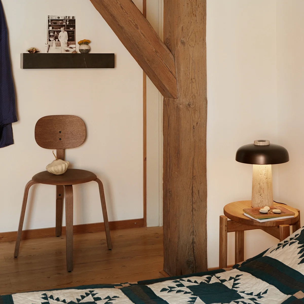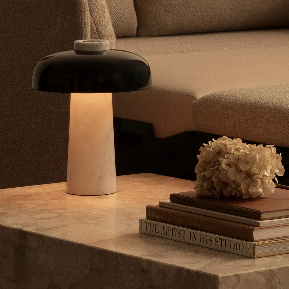 Onder de lampenkap bevindt zich een LED-lichtbron waarvan het licht door de kap wordt gereflecteerd en op de stenen voet valt. Dit creëert een indirect, niet-verblindend licht dat een gezellige sfeer creëert. Tegelijkertijd plaatst de neerwaartse lichtemissie van de armatuur zichzelf in het middelpunt, waardoor het een decoratief element in de kamer wordt. Op het bijzettafeltje in de gang, als nachtlampje naast het bed of als sfeerlicht op het dressoir in de woonkamer - de Reverse Audo tafellamp van past zich perfect aan de verlichtingsbehoeften van de kamer aan. Dankzij een knop op de bovenkant kan het licht ook gemakkelijk worden gedimd.