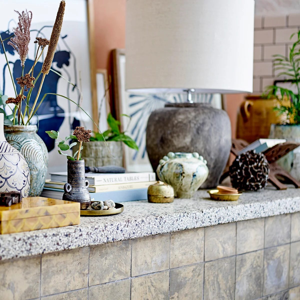 De Isabelle tafellamp van Bloomingville is gemaakt met een prachtige steengoed voet in een rustieke vintage look.