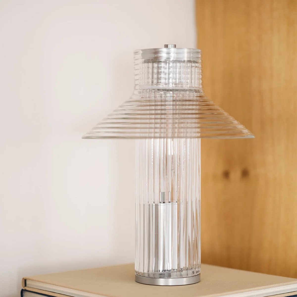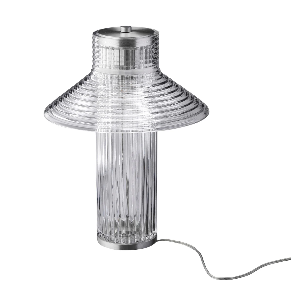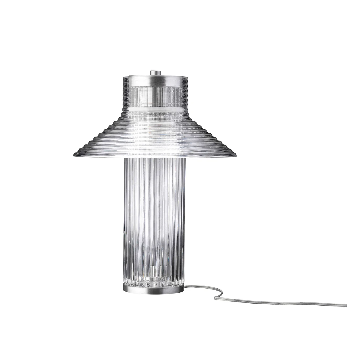 De Sletterhage tafellamp, ontworpen door Laura Bilde, maakt deel uit van de Sletterhage lampencollectie vernoemd naar de iconische Deense vuurtoren. Al tientallen jaren verlicht de Sletterhage vuurtoren de omgeving verlicht en vissers, de lokale bevolking en toeristen helpt navigeren rond de pittoreske Kaap Helgenæs in het centrum van Denemarken. Geïnspireerd door de industriële elementen van de vuurtoren, bestaat het ontwerp van de lamp uit geribbeld glas in een transparante constructie. De Deense ontwerpster Laura Bilde heeft een harmonieuze lampenfamilie gecreëerd door handig gebruik te maken van dezelfde glazen onderdelen in verschillende variaties.