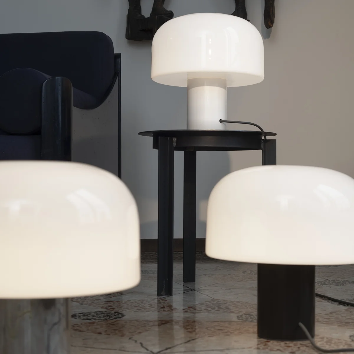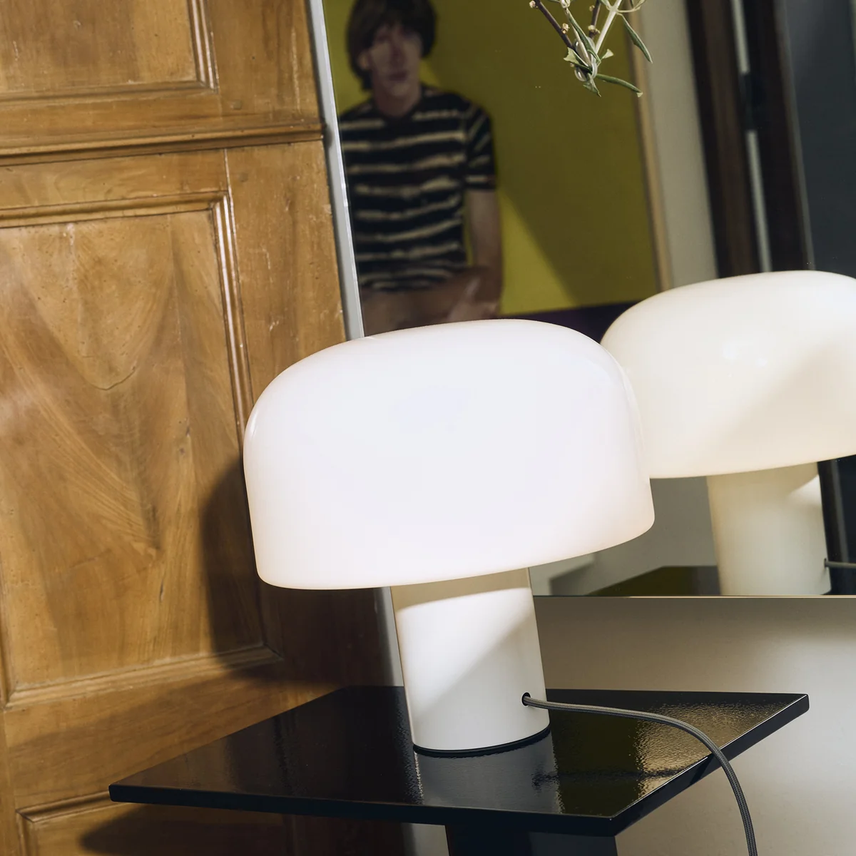 Flos De Bellhop glazen tafellamp, ontworpen door Edward Barber en Jay Osgerby voor, belichaamt modern design in zijn puurste vorm. Met haar elegante, handgeblazen glazen body straalt ze diffuus licht uit en creëert ze een warme en uitnodigende sfeer. De combinatie van minimalistische esthetiek en innovatieve functionaliteit maakt deze armatuur tot een tijdloos hoogtepunt in elke kamer. Het is perfect voor gebruik op tafels, ladekasten of planken en past moeiteloos in verschillende interieurs.