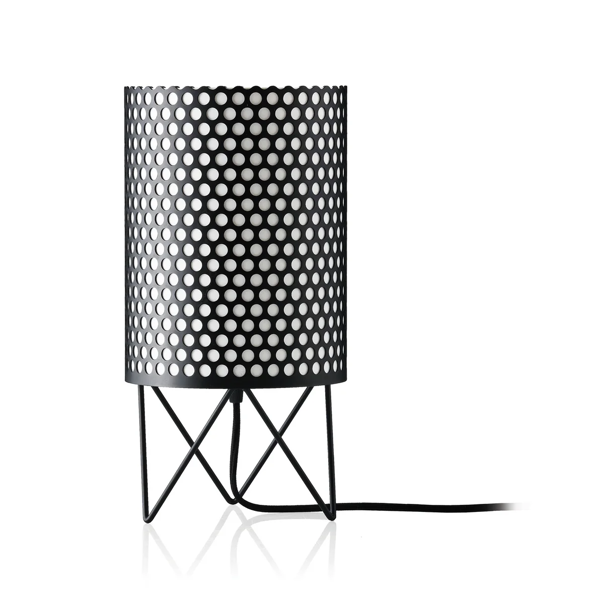 De tafellamp kenmerkt zich door zijn architectonische vormgeving, die perfect aansluit bij elke moderne ambiance. Het gatenpatroon en het draadvormig frame zorgen voor een zekere lichtheid en een gezellige sfeer in de ruimte. Wanneer het licht wordt ingeschakeld, ontstaat er een buitengewoon samenspel van licht en schaduw door het patroon op de muur.