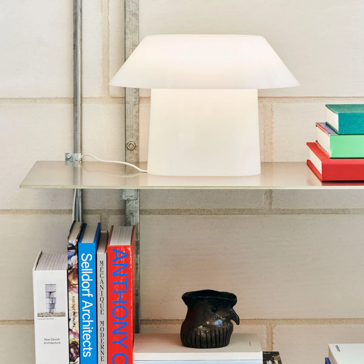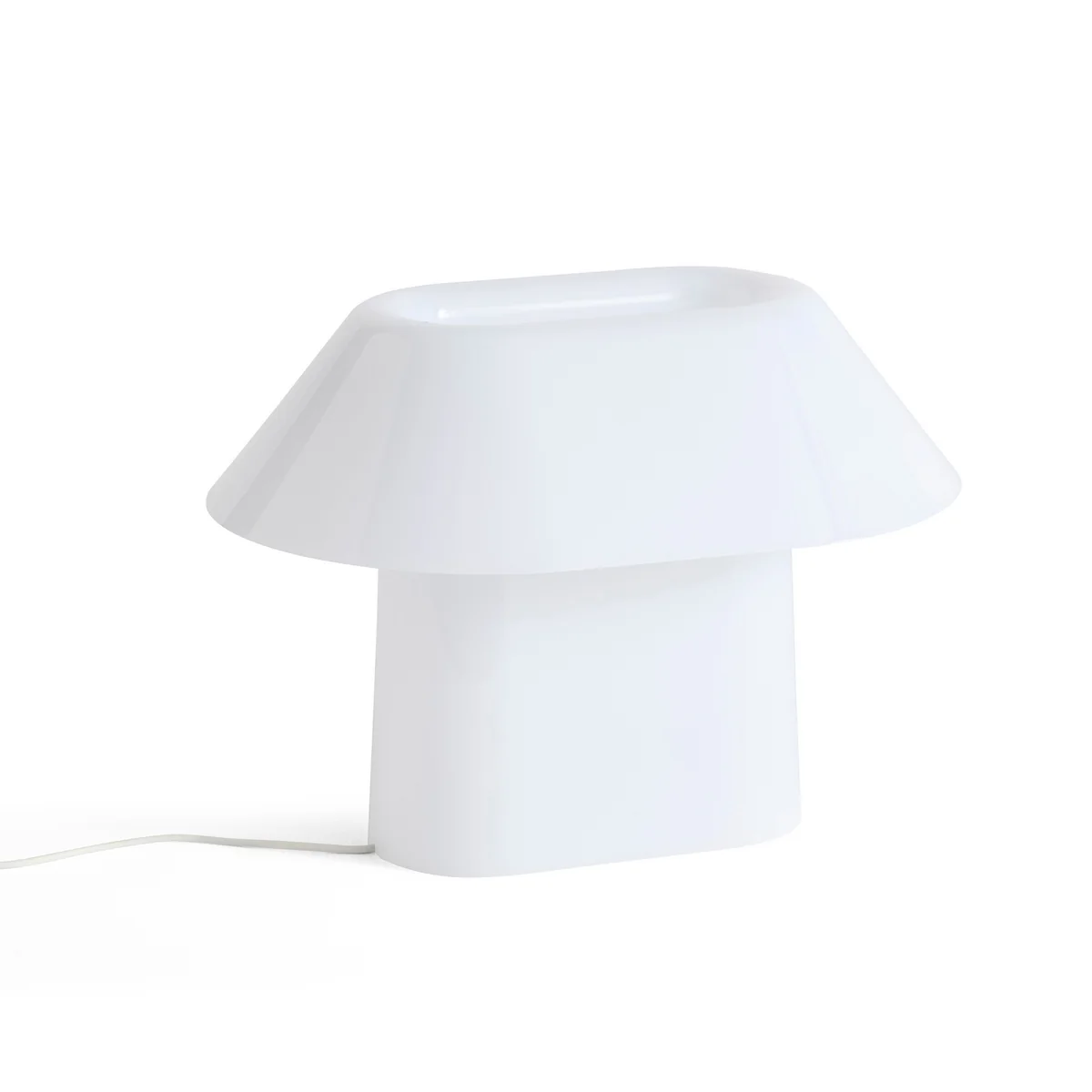 Drome van HAY is een veelzijdige LED tafellamp die wordt gekenmerkt door zijn unieke ovale vorm. Afhankelijk van de kijkhoek verandert de langwerpige, elliptische vorm van de lamp van uiterlijk. De holle structuur verbergt een vervangbare, geïntegreerde lichtbron, waardoor een harmonieus, minimalistisch silhouet ontstaat dat licht van binnenuit uitstraalt.