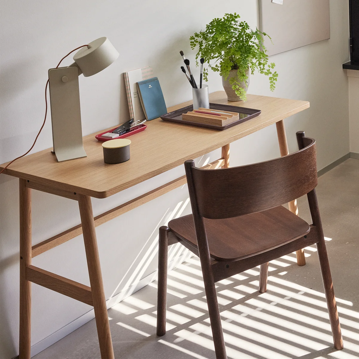 De Crea LED tafellamp van Hübsch Interior is een moderne blikvanger met zijn ongewone design. De kleurcontrasterende stoffen kabel en de geïntegreerde dimbare schakelaar. De lamp is prachtig geschikt voor iedereen die van ongewone woonelementen houdt!