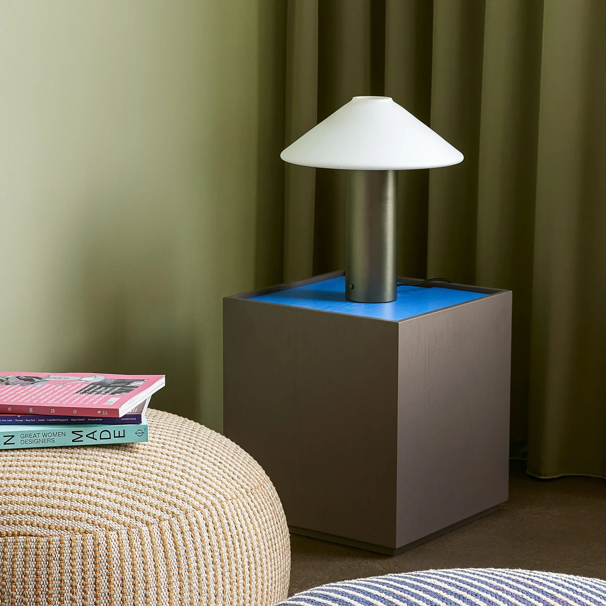 De Orbit tafellamp van Hübsch Interior - een verfijnde en elegante toevoeging aan elke kamer. De indrukwekkende donkergroene kleur straalt luxe en verfijning uit. Het strakke ontwerp, waarbij glas en metaal vakkundig worden gecombineerd, geeft de lamp een modern en toch tijdloos karakter. De metalen afwerking op de voet creëert een glinsterend effect dat een vleugje glamour toevoegt aan elke kamer. Met zijn opalen glazen kap produceert de lamp een zacht en aangenaam licht dat een gezellige sfeer creëert. Dankzij het statige formaat verdeelt deze tafellamp het licht gelijkmatig en biedt zo een praktische en stijlvolle oplossing voor elk huis.