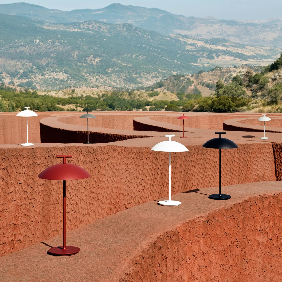De Mini Geen-A oplaadbare tafellamp van de Italiaanse fabrikant Kartell is een blikvanger met zijn moderne, minimalistische uitstraling. De leeslamp kan prachtig op de schrijftafel of het nachtkastje worden geplaatst. Mini Geen A is gemaakt van staal en een polyester poedercoating. De lamp op batterijen kan naar behoefte vrij worden gedimd. Verkrijgbaar in verschillende kleuren.