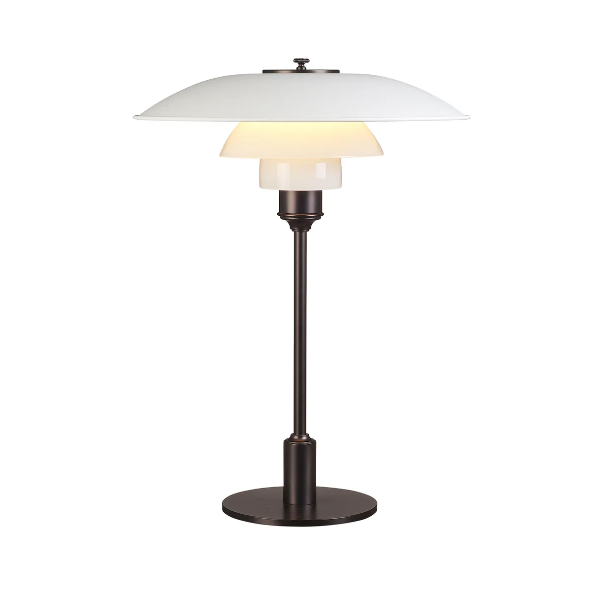 De tafellamp PH 3½-2½ is voorzien van een E14 fitting waarin een grote keuze aan lichtbronnen, waaronder meerdere LED varianten, passen. De armatuur is 100% verblindingsvrij.
