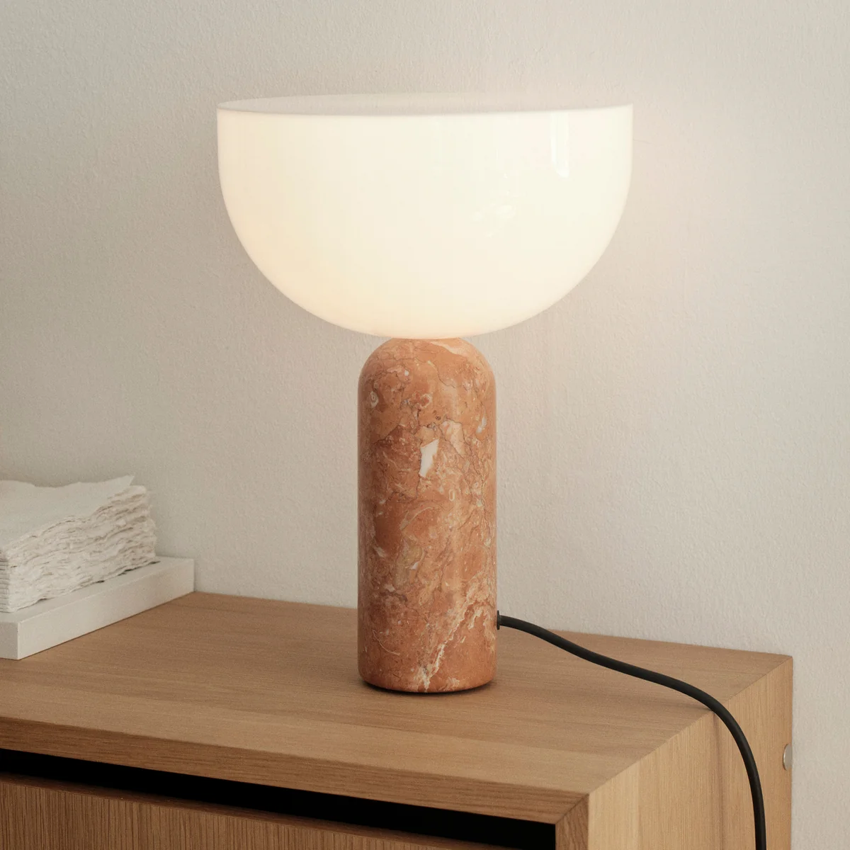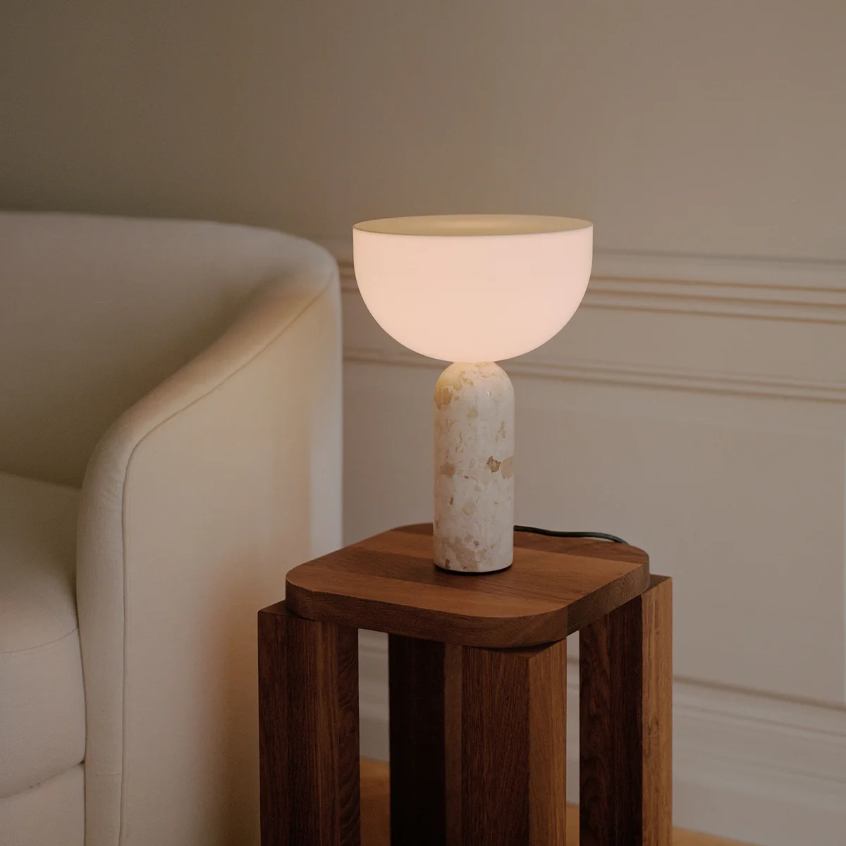 De Kizu S tafellamp van New Works is een fascinerend designobject dat wordt gekenmerkt door zijn elegante vorm en harmonieuze combinatie van materialen. Deze compacte versie van de populaire Kizu serie combineert sculpturale esthetiek met warme, diffuse verlichting en vormt zo een stijlvol hoogtepunt in elke kamer.