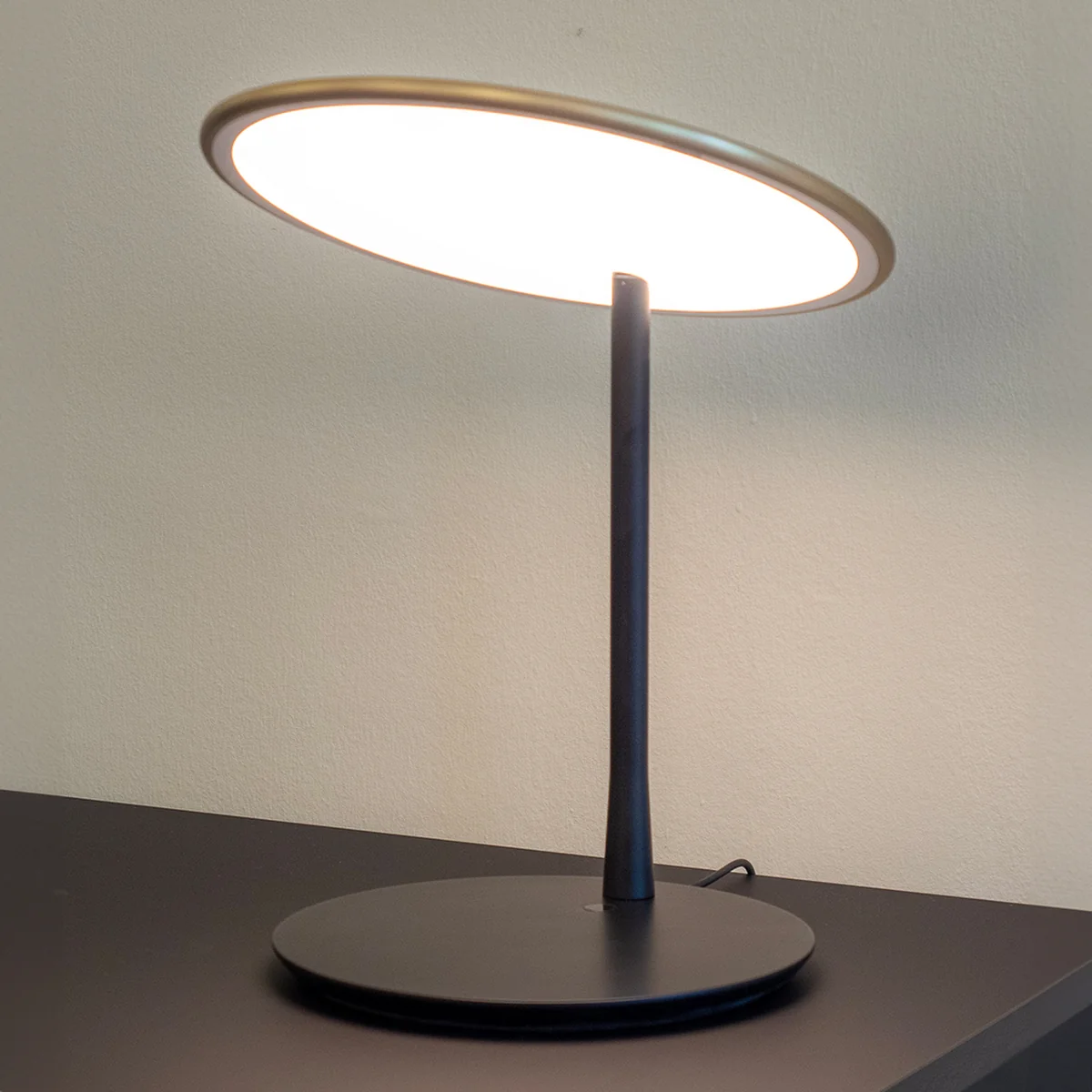 NINE De Disc LED tafellamp is ideaal voor gebruik op bureaus, nachtkastjes, bijzettafels of planken in de woonkamer. Hij biedt veelzijdige verlichtingsopties voor werkplekken, leesplekken of gewoon als decoratief element.