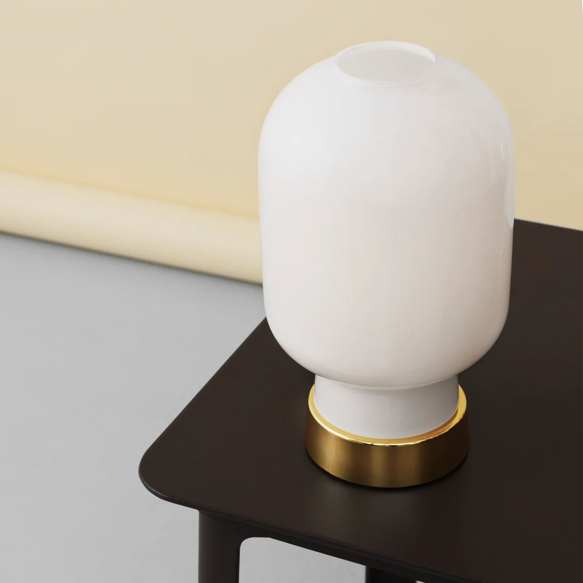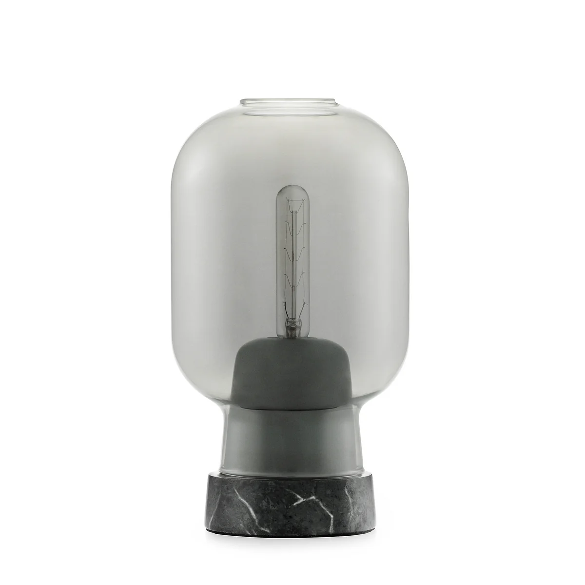 Normann Copenhagen en Legald hebben de nadruk gelegd op de functionele details, bijvoorbeeld de manier waarop de kap op de voet van de Amp tafellamp rust. De combinatie van de materialen zorgt voor een interessant contrast tussen het transparante, lichte glas en de massieve, zware marmeren of messing basis.