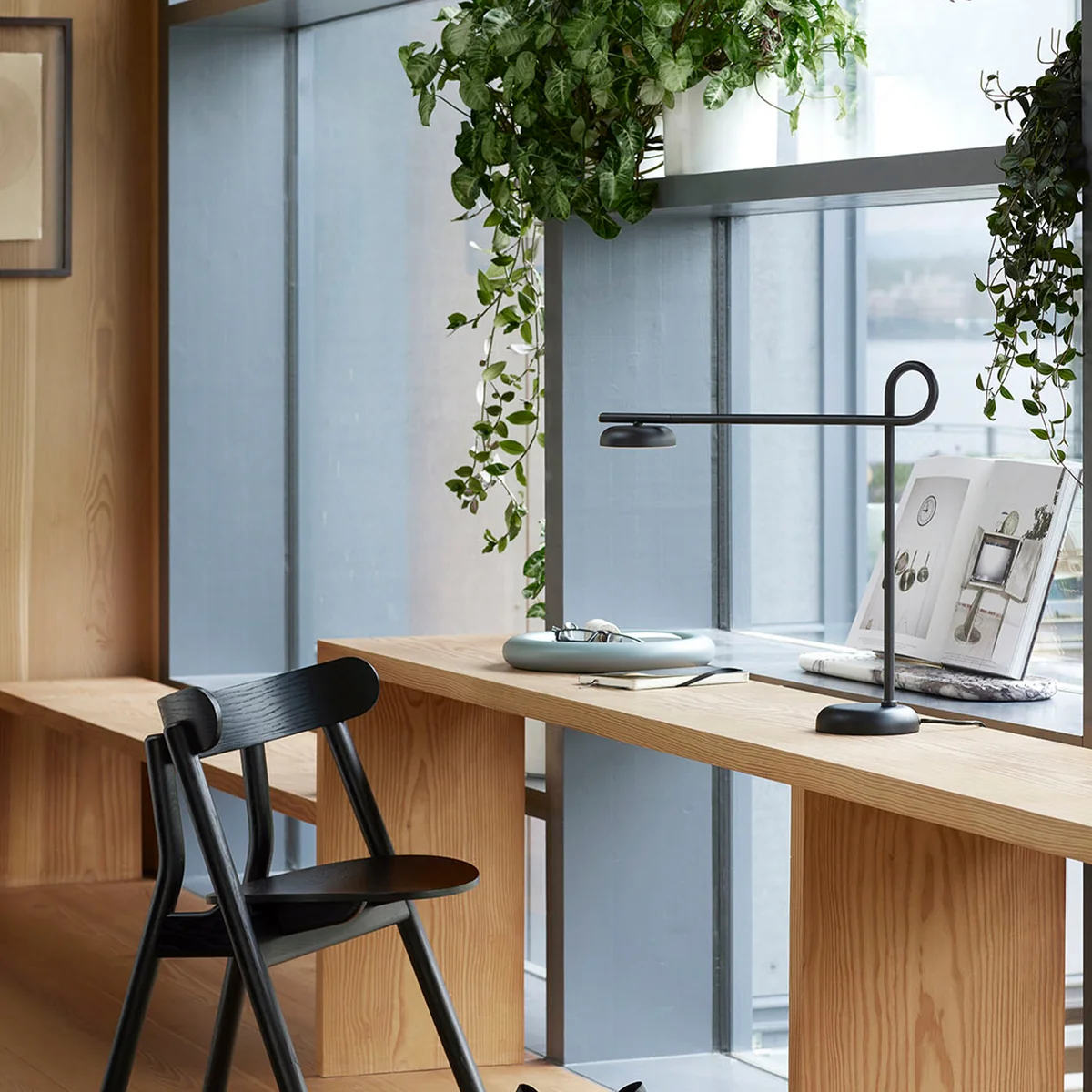 De Salto tafellamp van Northern is een eerbetoon aan de jeugdige herinneringen van de ontwerpers van de Gridy ontwerpstudio. De curve in de body doet denken aan een skateboardhelling. De tafellamp is een delicaat maar opvallend object in het interieur.