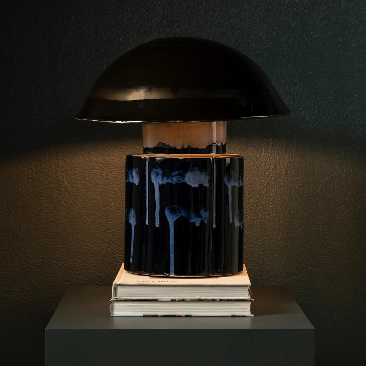 De John Serax tafellamp van maakt indruk met zijn rustieke ontwerp en opvallende karakter. Hij is gemaakt van hoogwaardig materiaal en maakt indruk met zijn diepblauwe buitenkant, die is verfijnd met het reactieve glazuur van Anita Le Grelle en een bijzondere verfijning uitstraalt.
