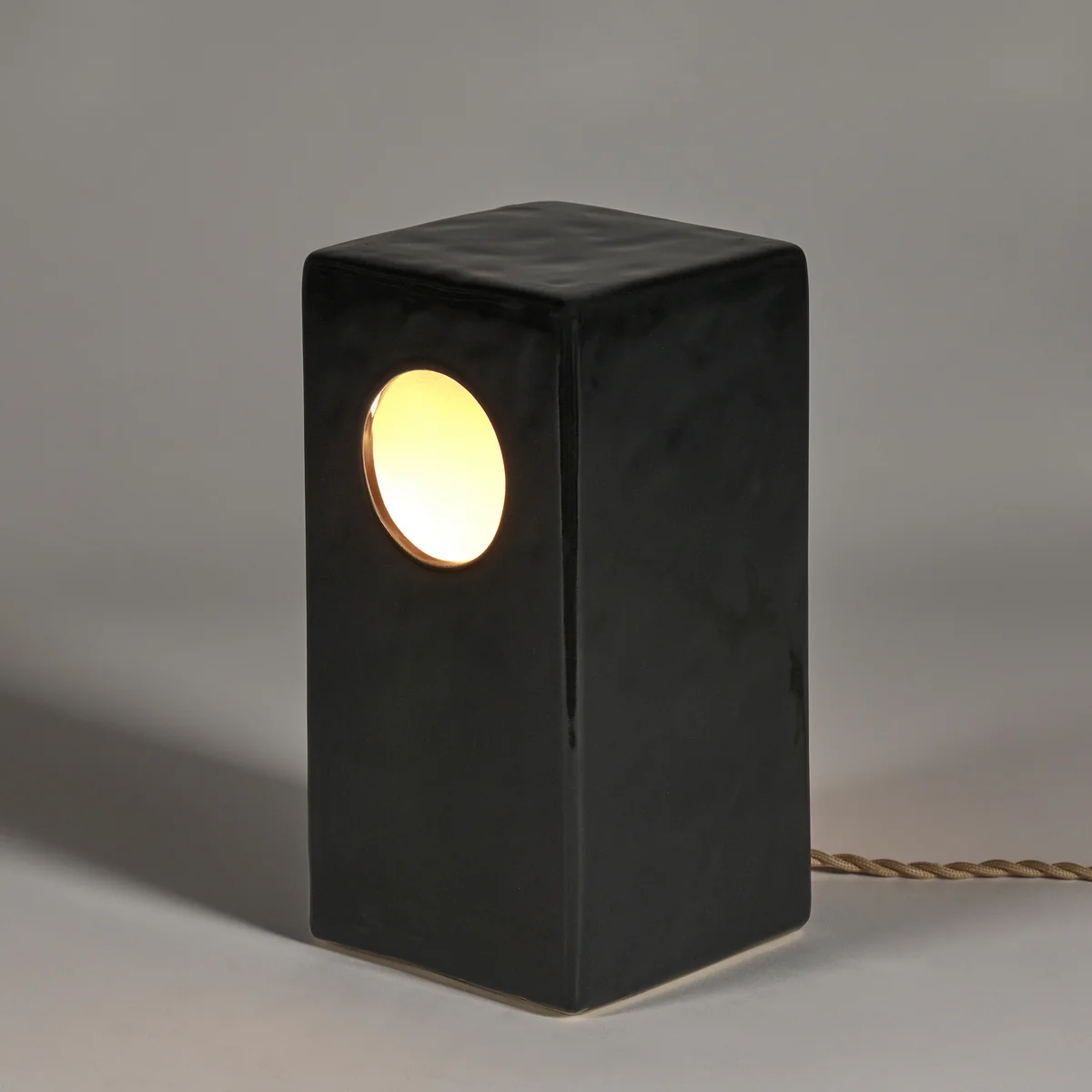 De Maxime Serax tafellamp van combineert geometrisch design met tijdloze elegantie. De lamp is gemaakt van hoogwaardig steengoed en maakt indruk met zijn moderne, donkere buitenkant, die hem een eigentijdse look geeft. De goudkleurige binnenkant creëert een warme, uitnodigende gloed die elke kamer in sfeervol licht baadt.