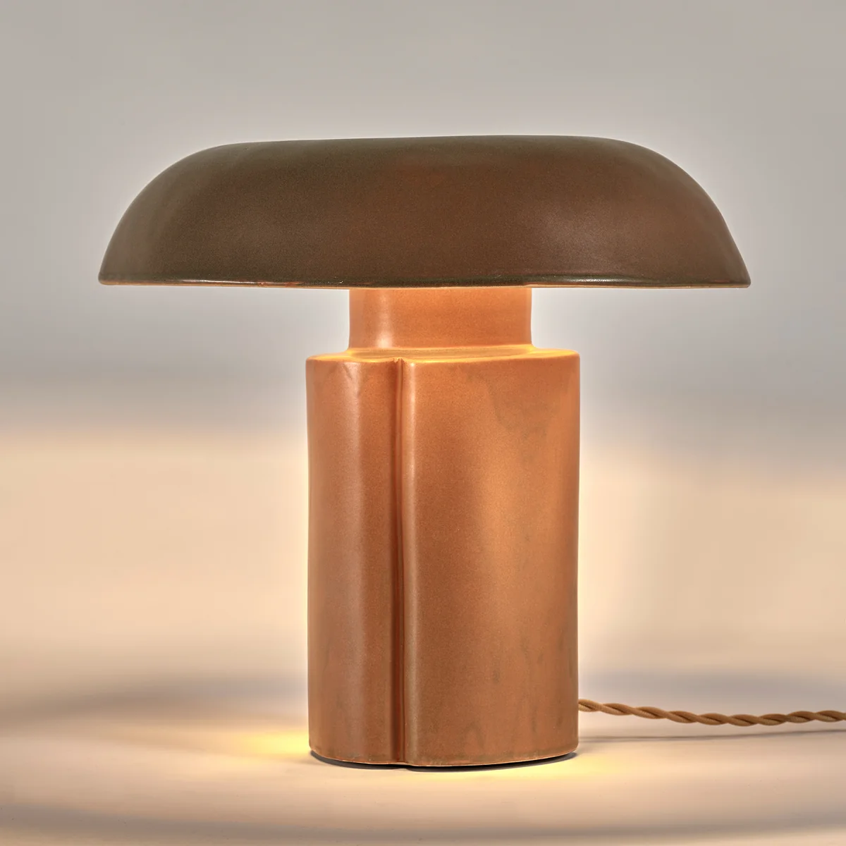 De Oliver Serax tafellamp combineert rustieke charme met luxe details. Hij is gemaakt van robuust aardewerk en maakt indruk met zijn warme, okerkleurige glazuur en diepblauwe buitenkant, die is afgewerkt met Anita Le Grelle's kenmerkende reactieve glazuur.