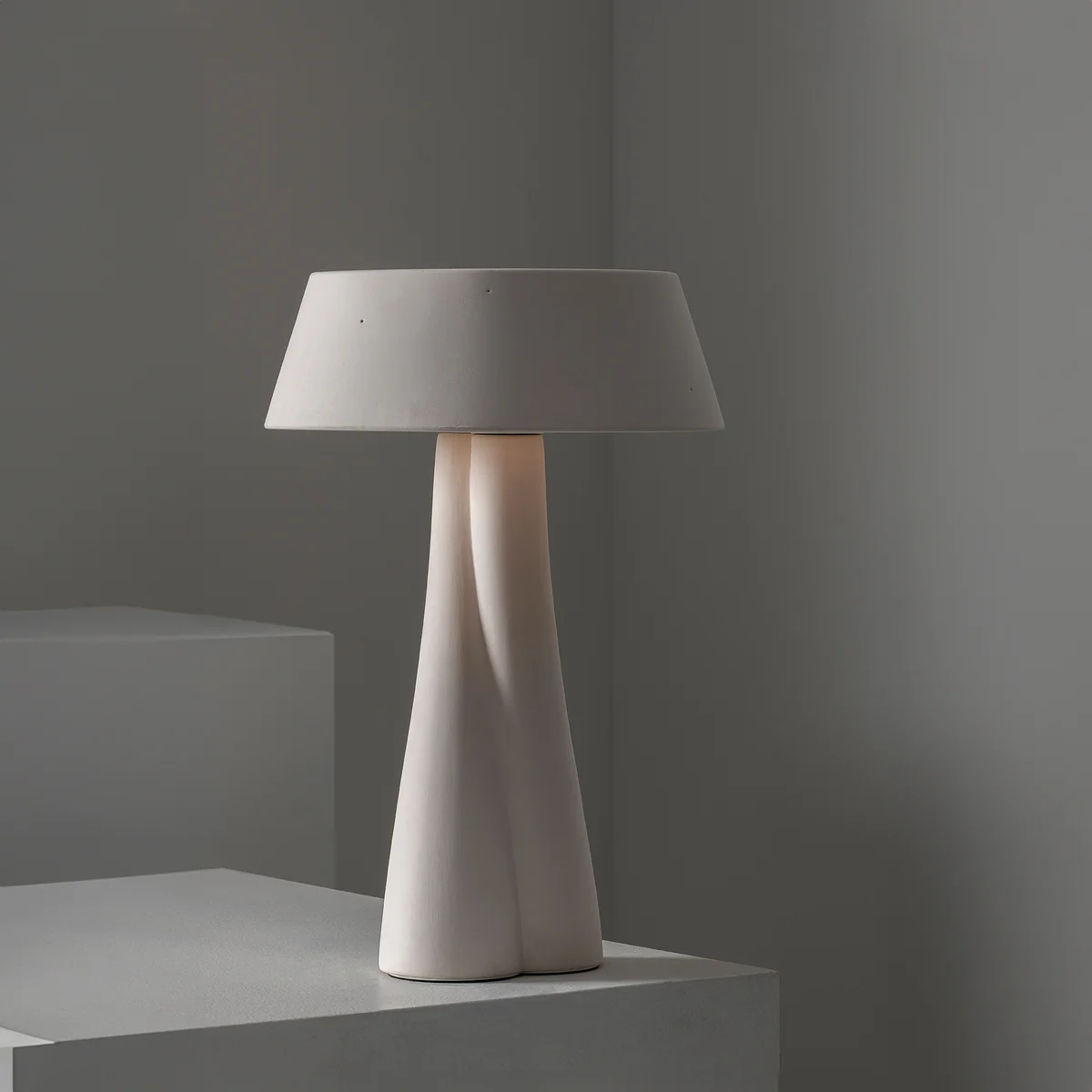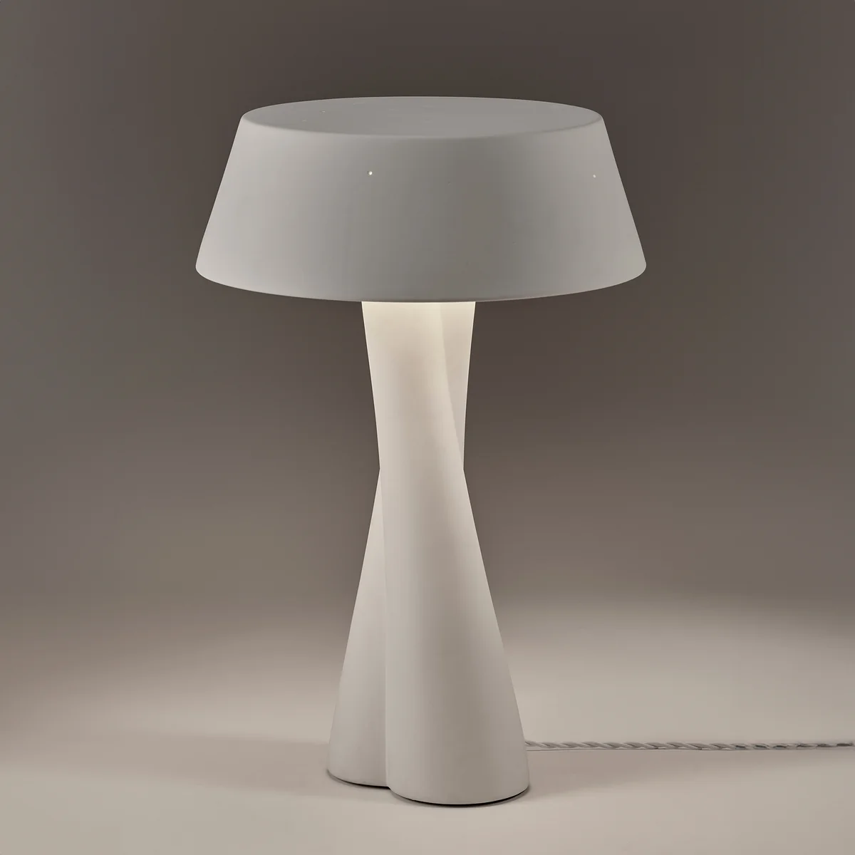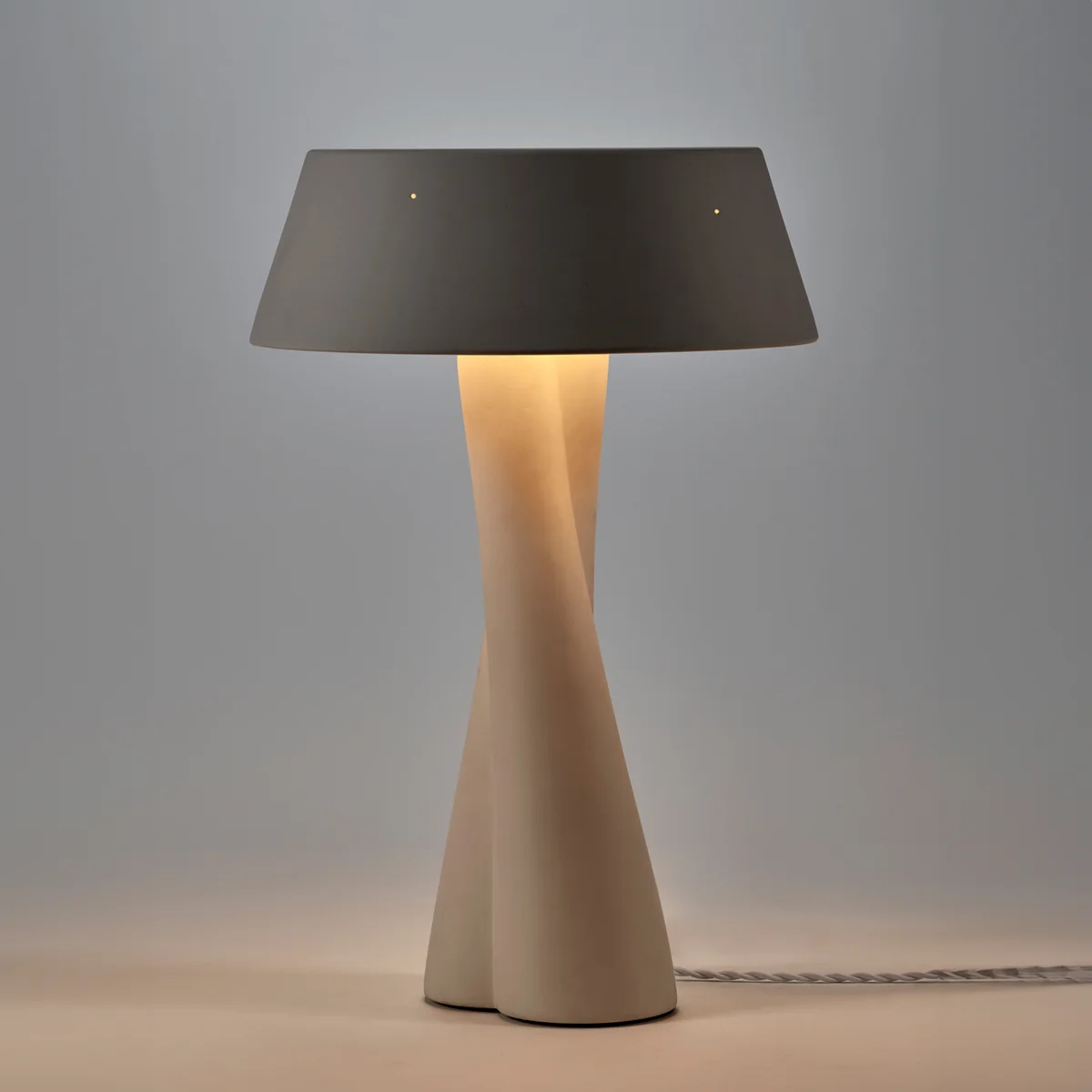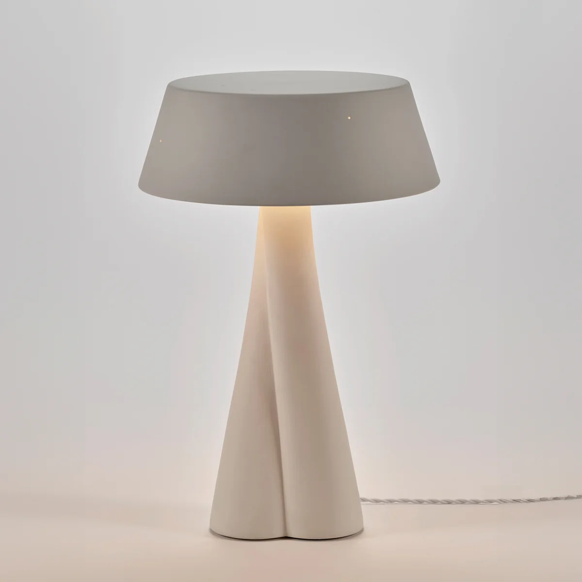 De Paulina Serax tafellamp van, ontworpen door Anita Le Grelle, is een persoonlijk en poëtisch designstuk dat een eerbetoon is aan de nauwe band tussen de ontwerpster en haar dochter. De verstrengelde keramische voet symboliseert deze speciale relatie en geeft de lamp een organische, handgemaakte look.