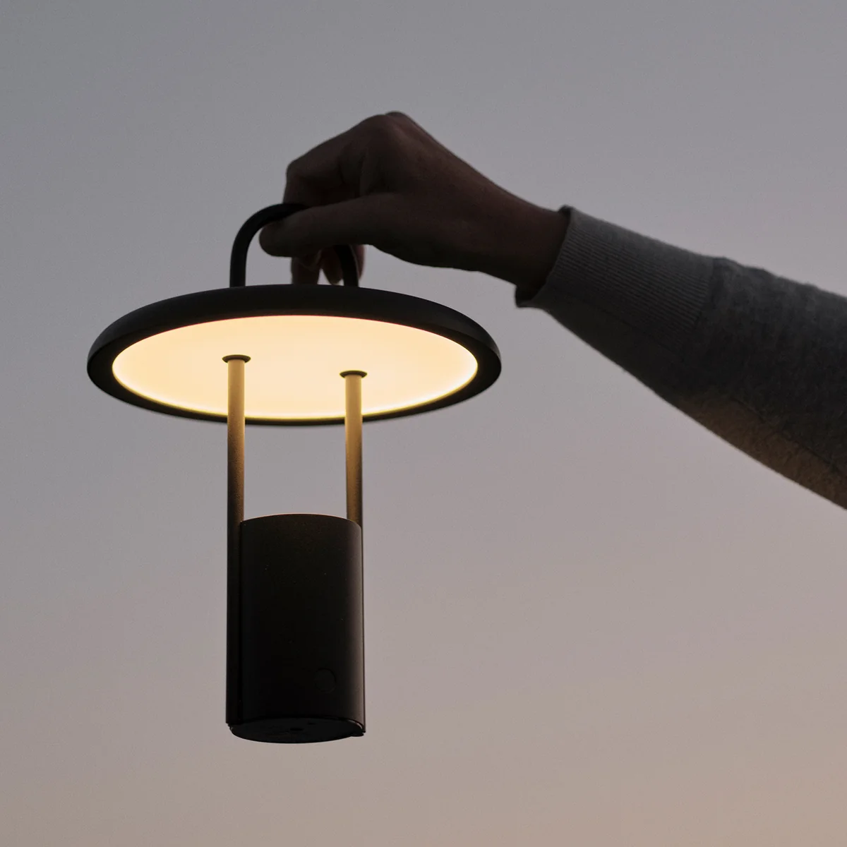 De lamp is gemaakt van roestvrij staal en heeft een matte poedercoating. Door het minimalistische en moderne ontwerp kan de lamp op verschillende plekken in huis worden neergezet, bijvoorbeeld op de tuintafel, in de vensterbank of op het bureau.