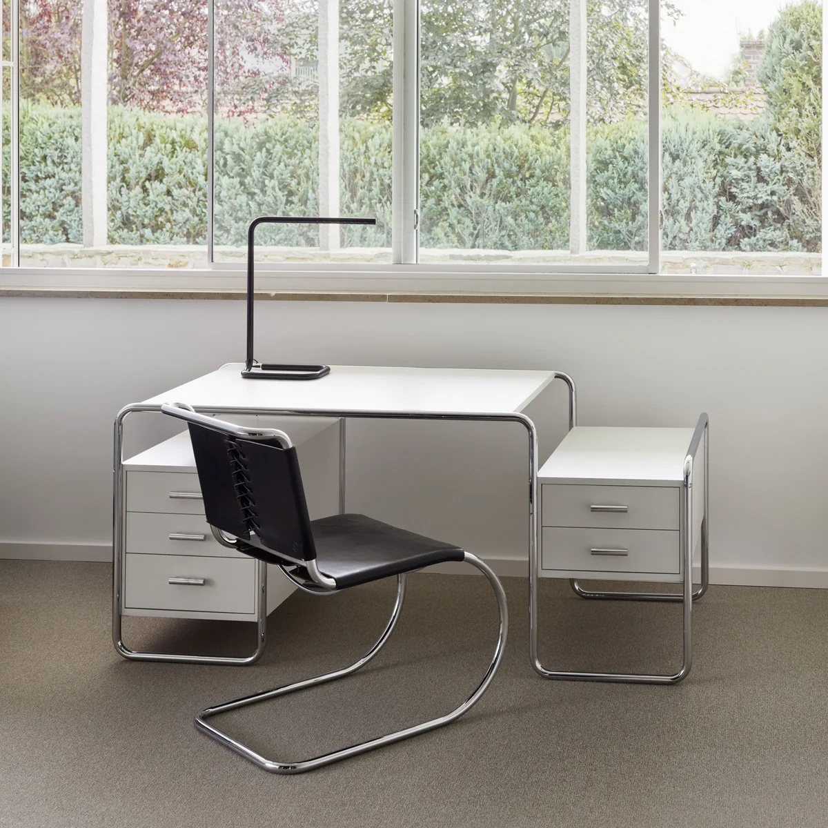 Slanke LED-tafellamp van stalen buizen