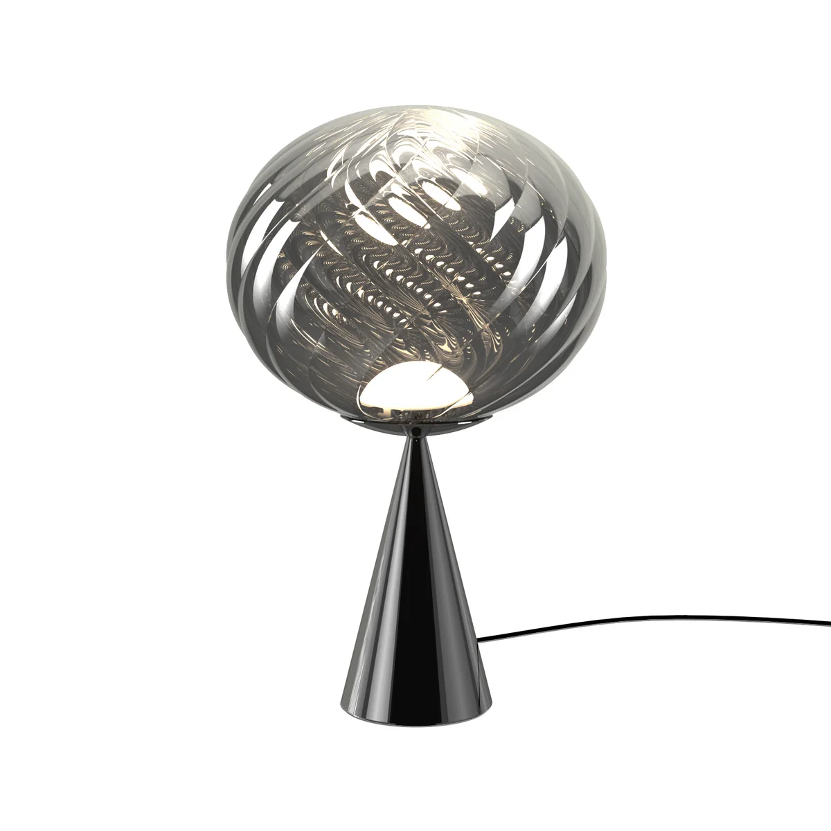 De Whirl Cone Fat tafellamp van Tom Dixon combineert artistieke designtaal met technische verfijning. De opvallende, kegelvormige voet en de organisch gebogen reflector vormen een sculpturaal object dat zowel verlicht als fascineert. Het licht is zacht verspreid en benadrukt de kwaliteit van het vakmanschap en de diepte van het materiaal die kenmerkend is voor Tom Dixon s ontwerpen. Expressief designobject voor tafel, dressoir of nachtkastje.