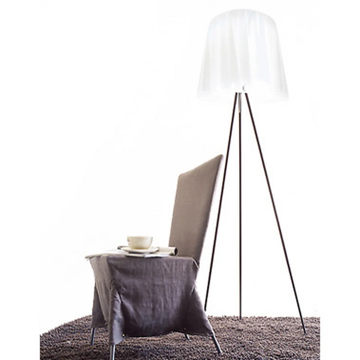De filigrain vloerlamp Rosy Angelis is in 1994 ontworpen door Philippe Starck voor Flos . De delicate basis en de ultralichte speciale stof geven Rosy Angelis een delicaat karakter. Het diffuse licht van de vloerlamp zorgt voor een harmonieuze en warme sfeer en de intensiteit kan worden geregeld met een dimmer.