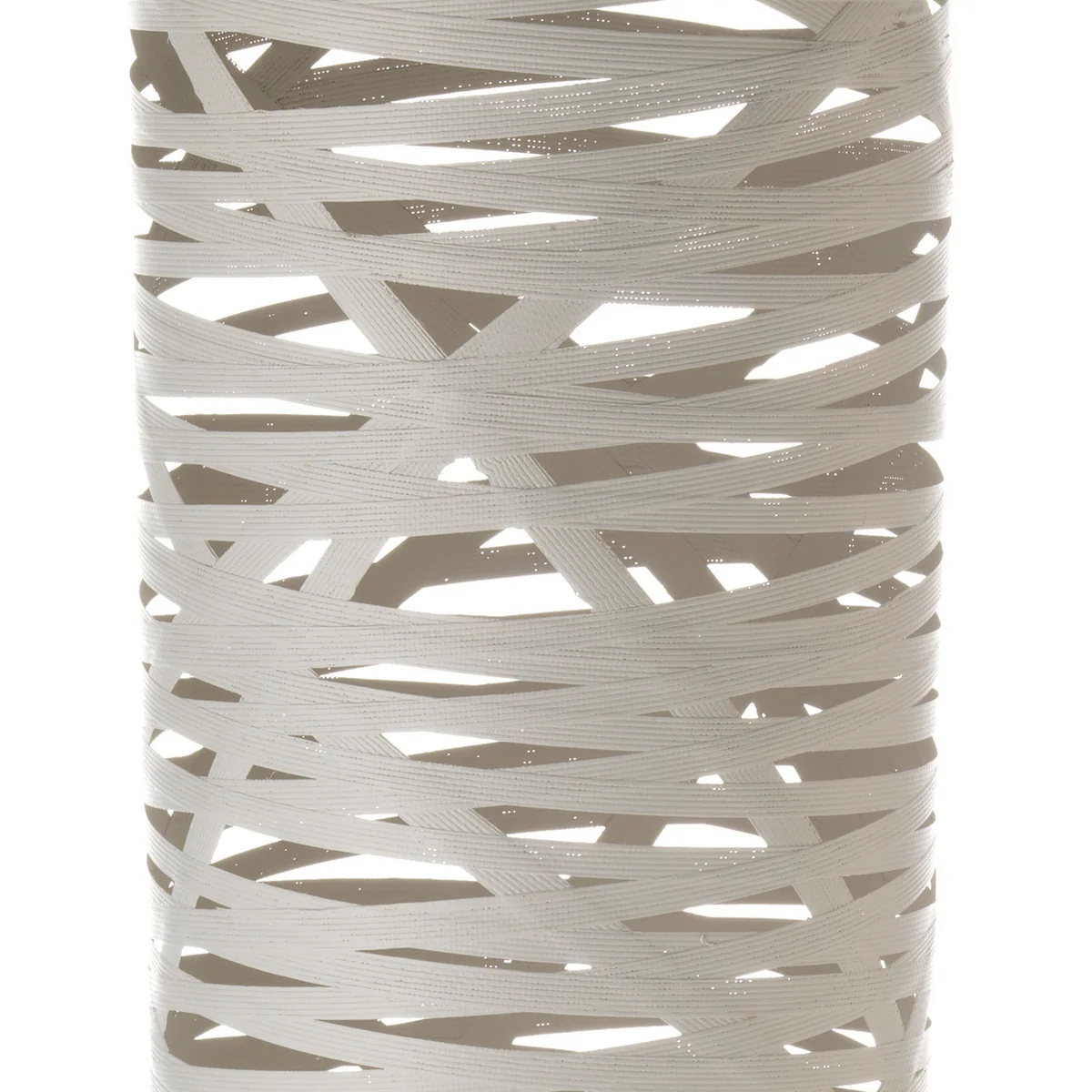 Het ontwerp van de Tress vloerlamp is samengesteld uit willekeurig in elkaar gevlochten stroken glasvezel en kunsthars, die in combinatie een willekeurig net vormen. De stroomkabel is in het net geweven, dat een samenspel is van verschillende oppervlakken, waardoor het zich presenteert als een immanent onderdeel van de armatuur.