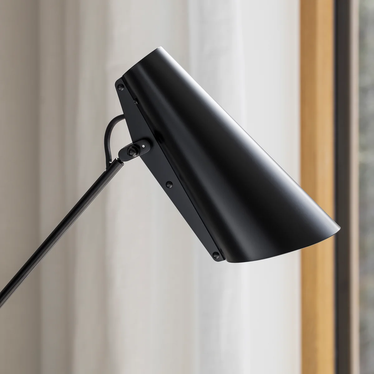 Bij de Birdy Deze vloerlamp is een heruitgave van de klassieke lamp van de Noorse ontwerper Birger Dahl uit 1952. Het moderne en toch enigszins speelse ontwerp was toen al inspirerend, zodat de lamp in 1954 op de Triennale van Milaan werd bekroond met de gouden medaille.