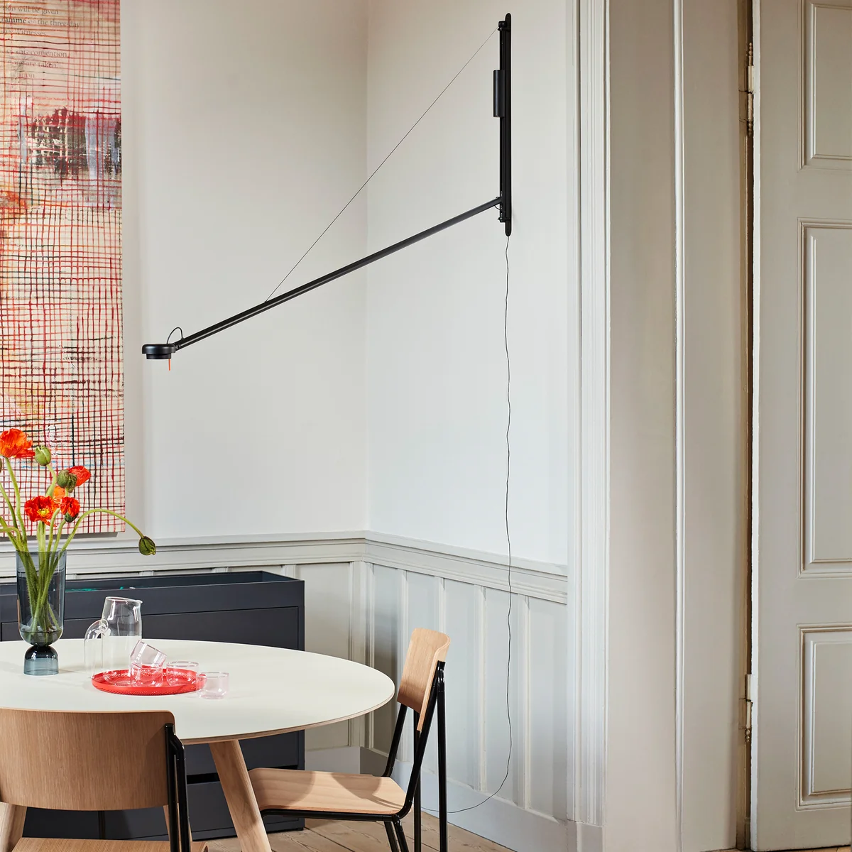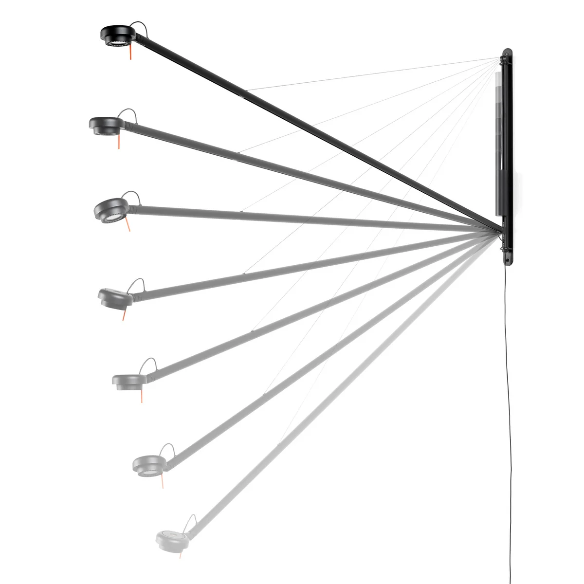 De naam van de wandlamp komt van het contragewichtsysteem, dat de twee delen van de lamp in evenwicht brengt. Hier is duidelijk te zien hoe de ervaring van ontwerper Sam Weller op het gebied van natuurkunde en technologie zijn ontwerp beïnvloedt.