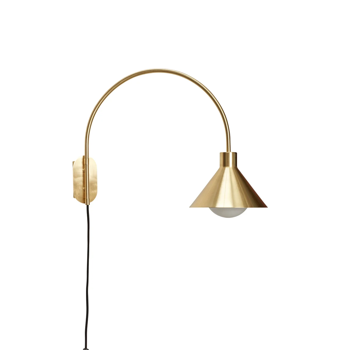 De messing wandlamp van Hübsch Interior laat de ruimte in het beste licht schijnen. Met zijn strakke metalen design past hij perfect in de woonkamer, de slaapkamer, het kantoor of zelfs in de gang. De tijdloze designtaal maakt het tot een chique verlichtingsarmatuur in elk interieur.