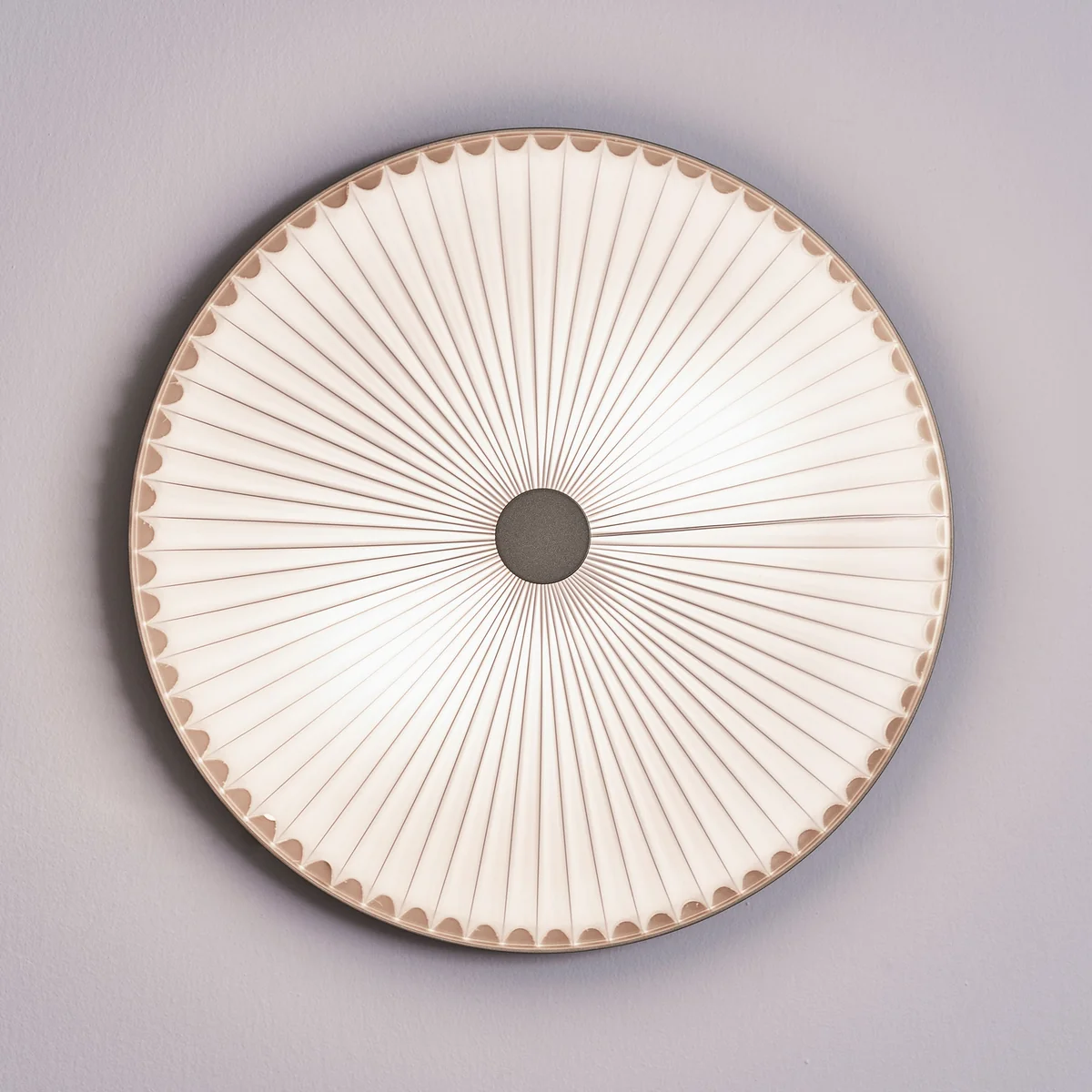 De Lamella wand- en plafondlamp van Le Klint is een versie van de Lamella hanglamp ontworpen door het ontwerpersduo Jonah Takagi en Hallgeir Homstvedt. De twee ontwerpers waren gefascineerd door de onderkant van de paddestoelen en lieten zich inspireren door hen om een serie armaturen te creëren met een soortgelijke lamellenplooistructuur. Lamella kan flexibel als wand- of plafondarmatuur worden gebruikt en zorgt voor verblindingvrij licht in de ruimte.