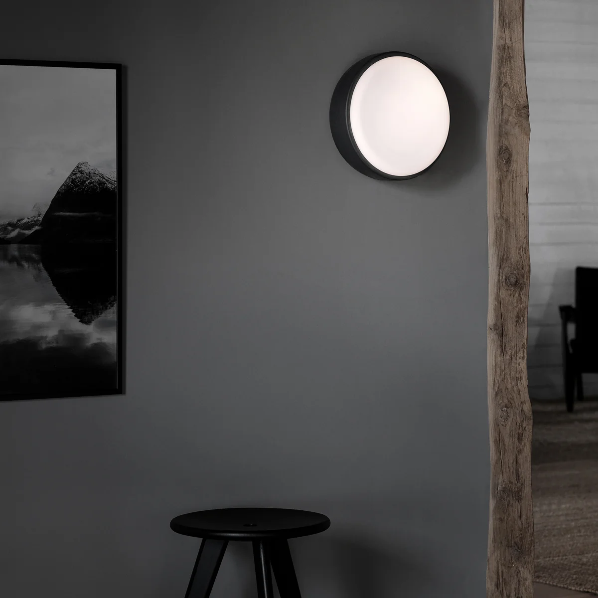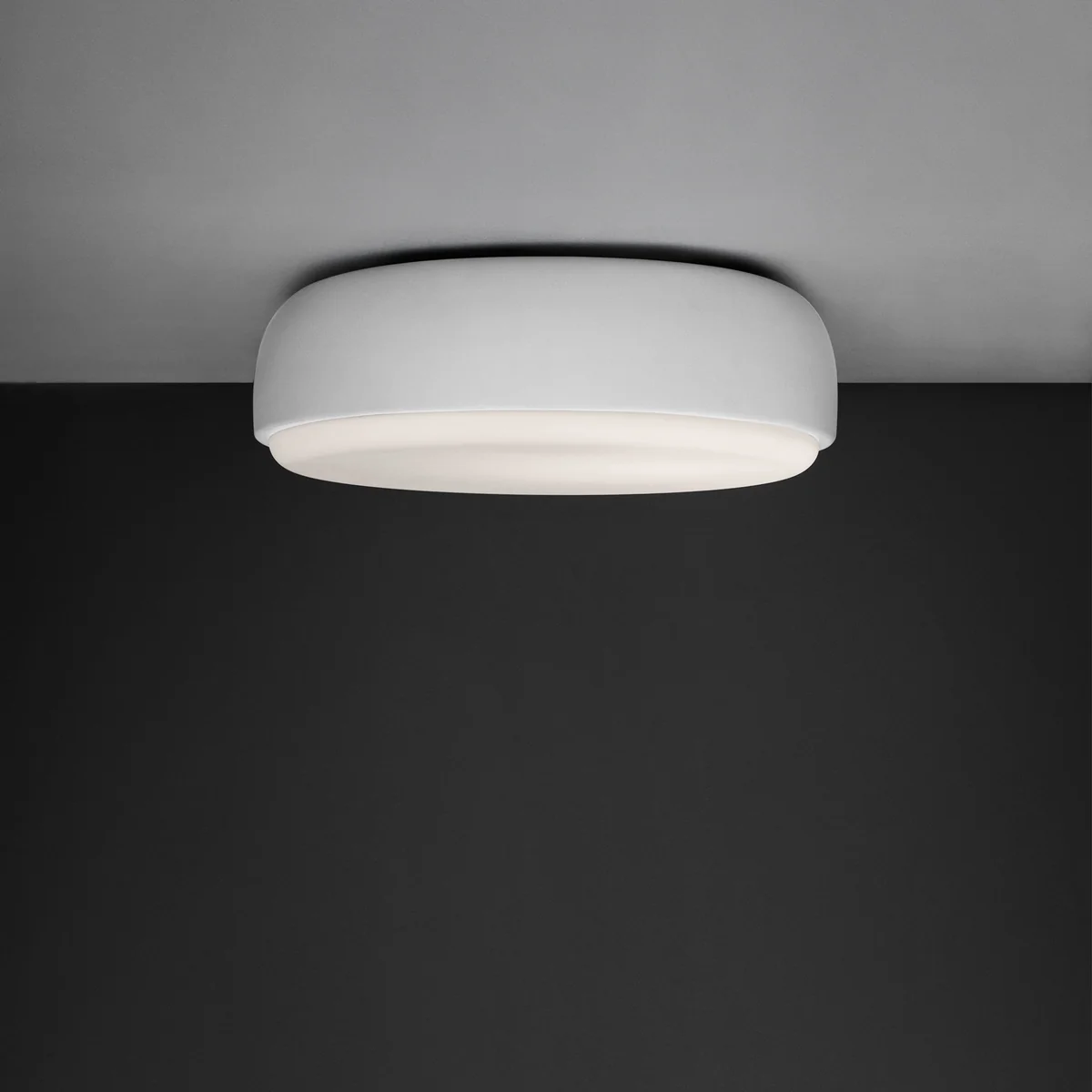 De armatuur, die zowel aan het plafond als aan de wand kan worden gemonteerd, bestaat uit een ronde metalen kap en een lichtgevend glazen ruitje, dat van alle kanten een diffuus en aangenaam licht geeft. Dankzij zijn minimalistische uiterlijk past hij perfect in moderne interieurs. Over Me is verkrijgbaar in verschillende maten en kleuren en kan flexibel aan het plafond of aan de wand worden bevestigd, afhankelijk van de ruimtelijke situatie - in de badkamer, in de keuken of in een rij in de gang.