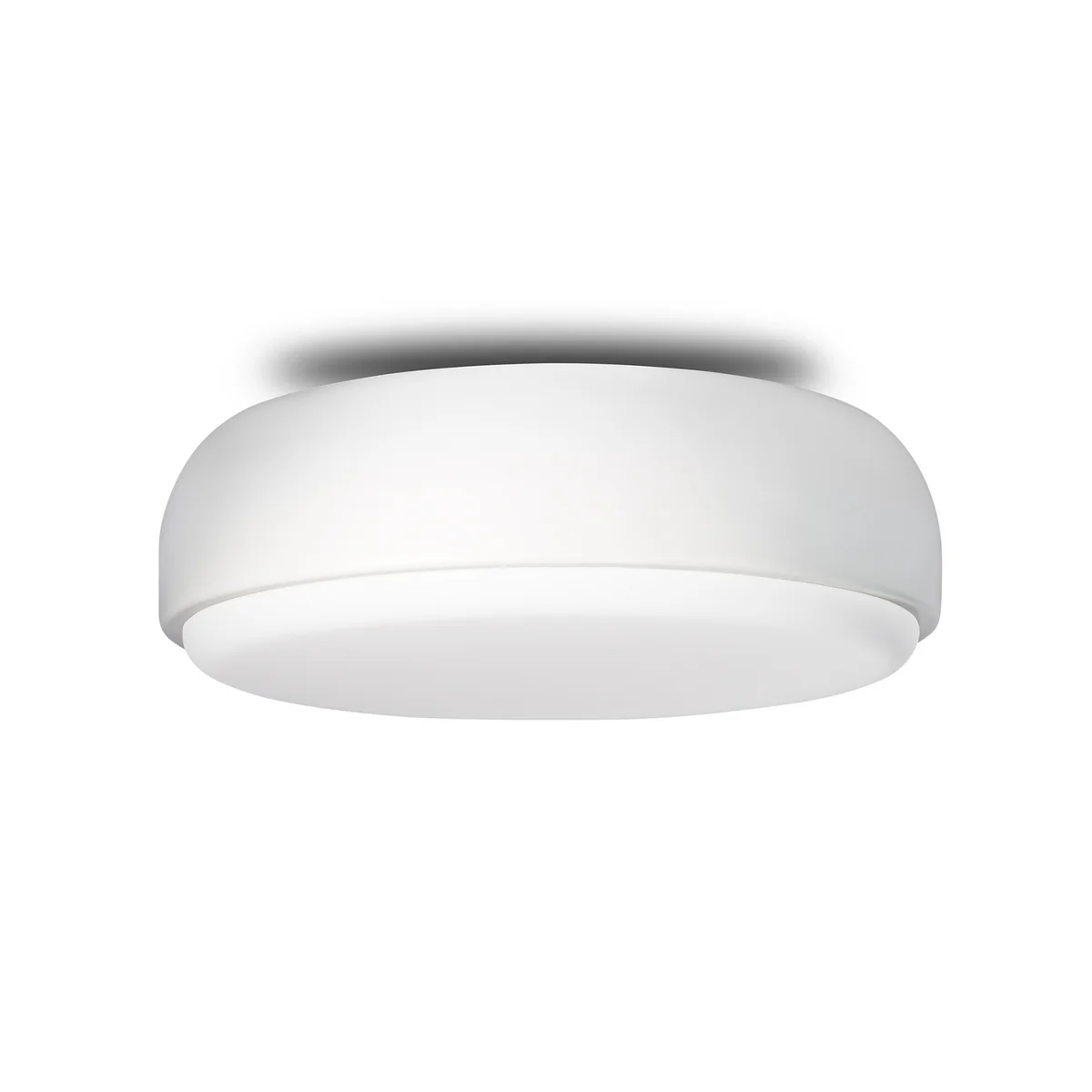 De armatuur, die zowel aan het plafond als aan de wand kan worden gemonteerd, bestaat uit een ronde metalen kap en een lichtgevend glazen ruitje, dat van alle kanten een diffuus en aangenaam licht geeft. Dankzij zijn minimalistische uiterlijk past hij perfect in moderne interieurs. Over Me is verkrijgbaar in verschillende maten en kleuren en kan flexibel aan het plafond of aan de wand worden bevestigd, afhankelijk van de ruimtelijke situatie - in de badkamer, in de keuken of in een rij in de gang.
