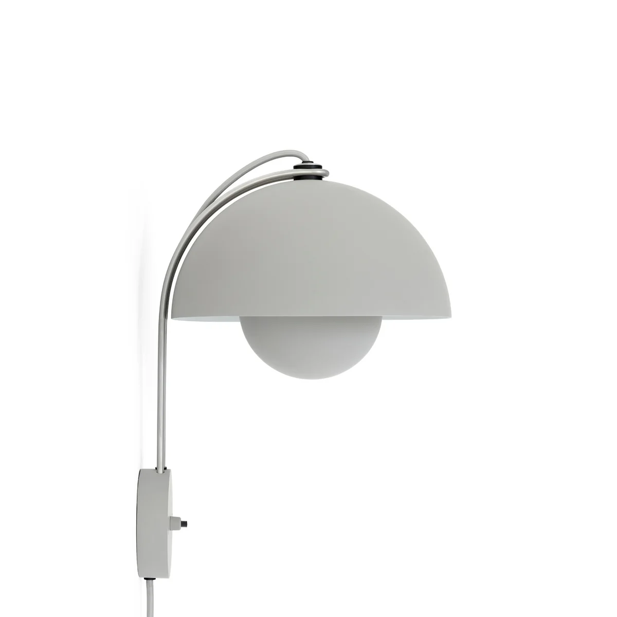 De wandlamp VP8 bestaat uit een koepelvormige metalen kap waaruit een ronde hanglamp steekt - het experimentele ontwerp is typisch voor Verner Panton. De ronde vorm wordt herhaald in de muurbevestiging, waar zich ook de aan/uit-schakelaar bevindt. De twee gepolijste roestvrijstalen stangen maken de compositie losser en vallen nauwelijks op, afhankelijk van de kleur van de muur. De indruk wordt gewekt dat de lampenkap magisch zweeft.