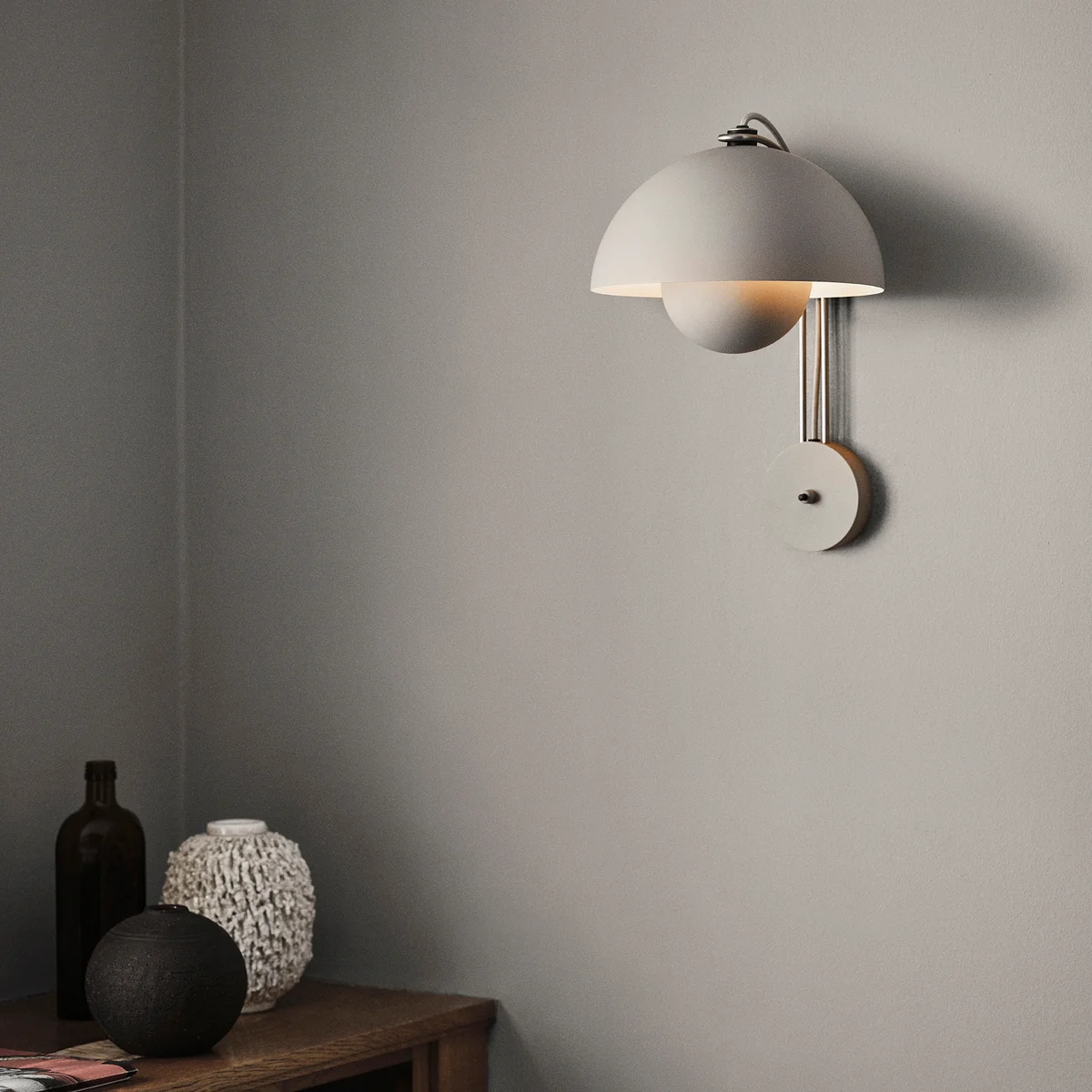 De Flowerpot serie bestaat uit verschillende modellen, waaronder hanglampen, tafellampen - en deze wandlamp. Ze zijn allemaal verkrijgbaar in vele kleuren.