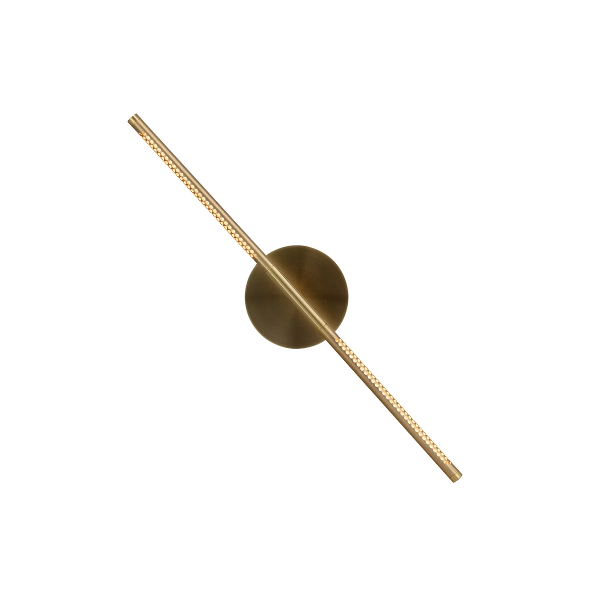 De Omni wandlamp is een visuele symfonie van messing en gestippelde lichtlijnen die sierlijk over de muren dansen. Deze veelzijdige wandlamp is ontworpen met het oog op multifunctionaliteit en flexibiliteit, en kan 360 graden worden gedraaid om het licht te vormen naar de gewenste sfeer.