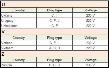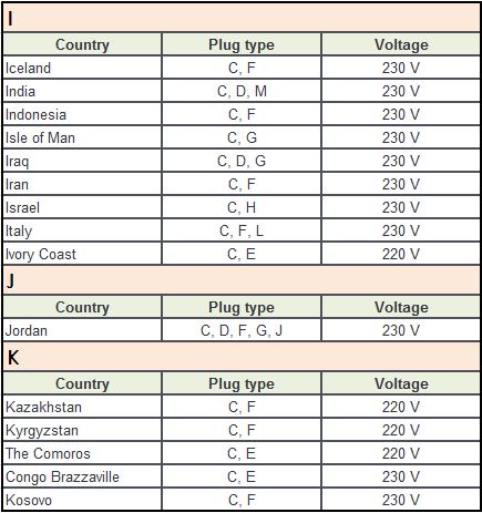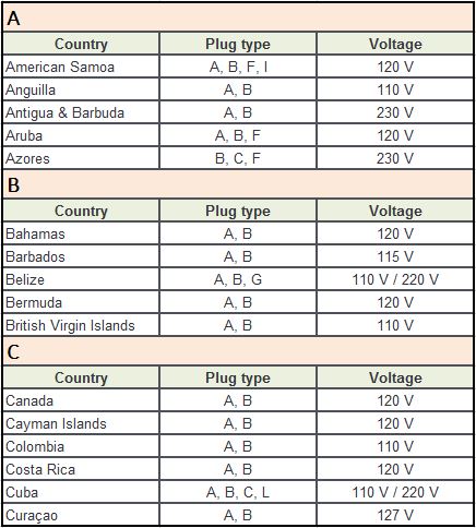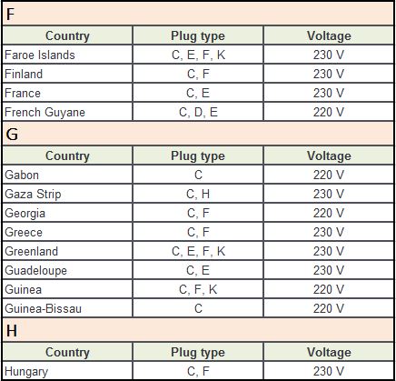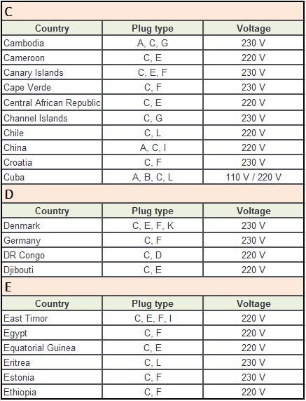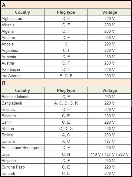 In the following country list (in alphabetical order) you can find out in which countries this type of plug is common, what alternatives there are and with how many volts it is operated: