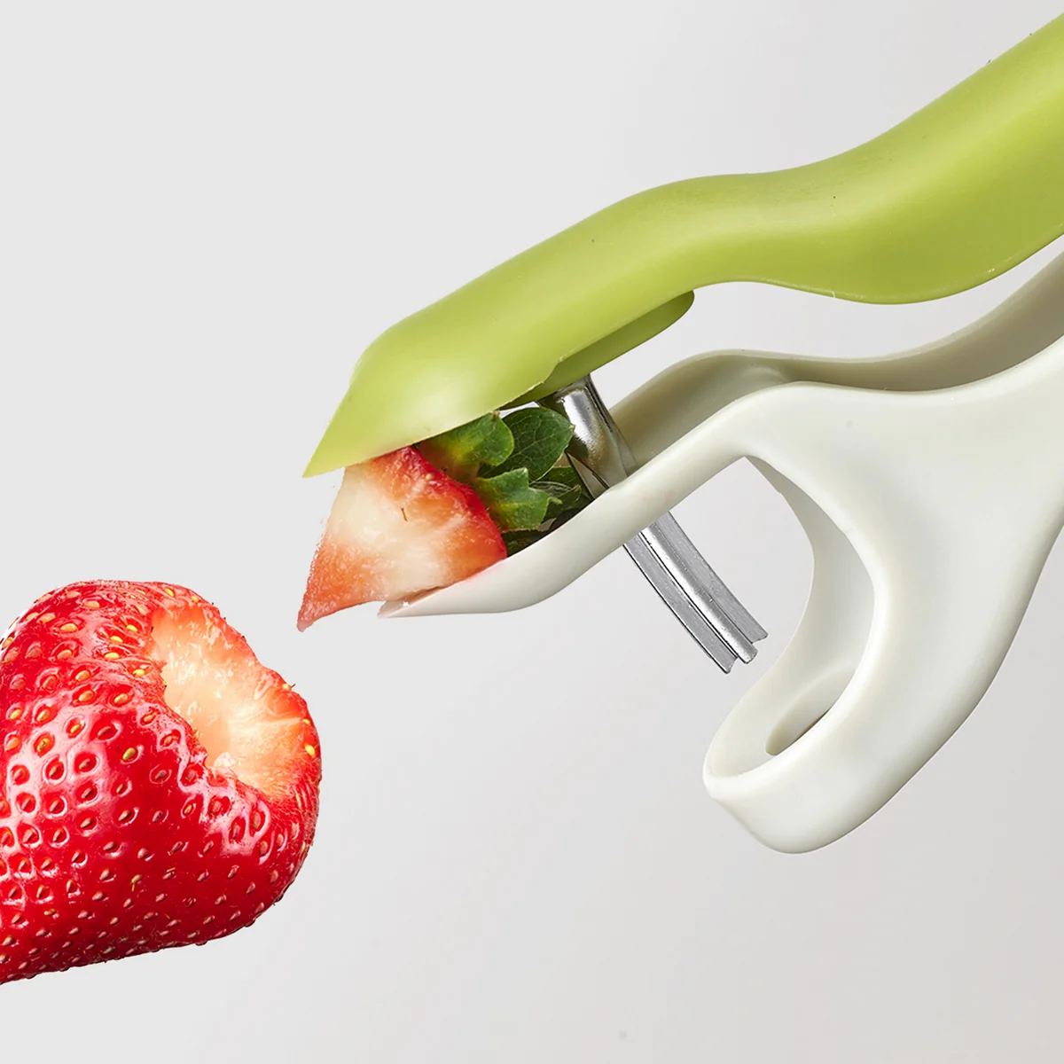 Het geraffineerde 2-in-1 ontwerp combineert een robuuste ontbolster met een pincetachtige grijphulp. Hierdoor kun je pitten, steeltjes en steeltjes snel en schoon verwijderen - met minder moeite en aanzienlijk minder geknoei. Beide functies zijn eenvoudig te gebruiken en kunnen na gebruik gemakkelijk worden gereinigd.