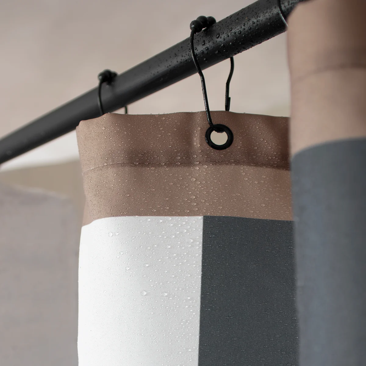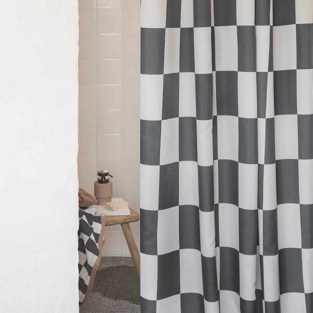 Mette Ditmer Het retro douchegordijn van heeft een opvallend maar harmonieus patroon dat doet denken aan de vormen en kleuren van de jaren 60 en 70. De geometrische patronen en het smaakvolle kleurenpalet maken dit douchegordijn tot een echte blikvanger die een speciaal tintje aan de badkamer geeft en tegelijkertijd een ontspannen sfeer creëert.