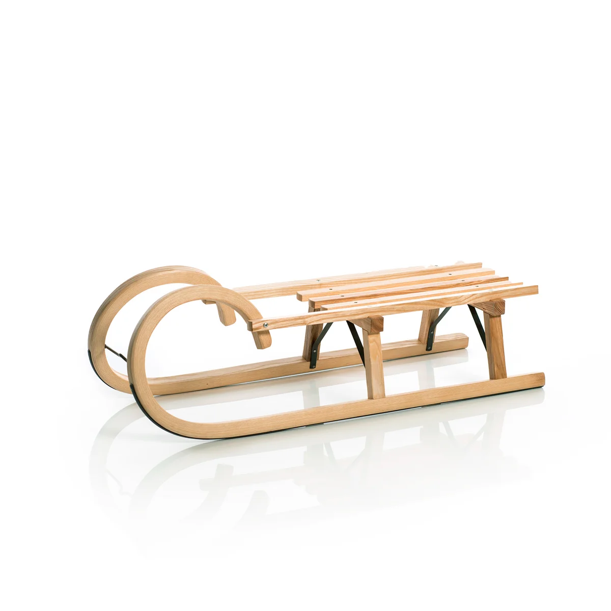Sirch De hoornslee met lattenbodem van maakt indruk met zijn klassieke ontwerp en hoogwaardige afwerking van massief essenhout. De stevige, gebogen hoorns geven de slee niet alleen een karakteristieke look, maar zorgen ook voor een stevige grip tijdens de rit. De lattenbodem biedt optimaal comfort en een stabiel zitvlak dat perfect is voor lange rodelavonturen.
